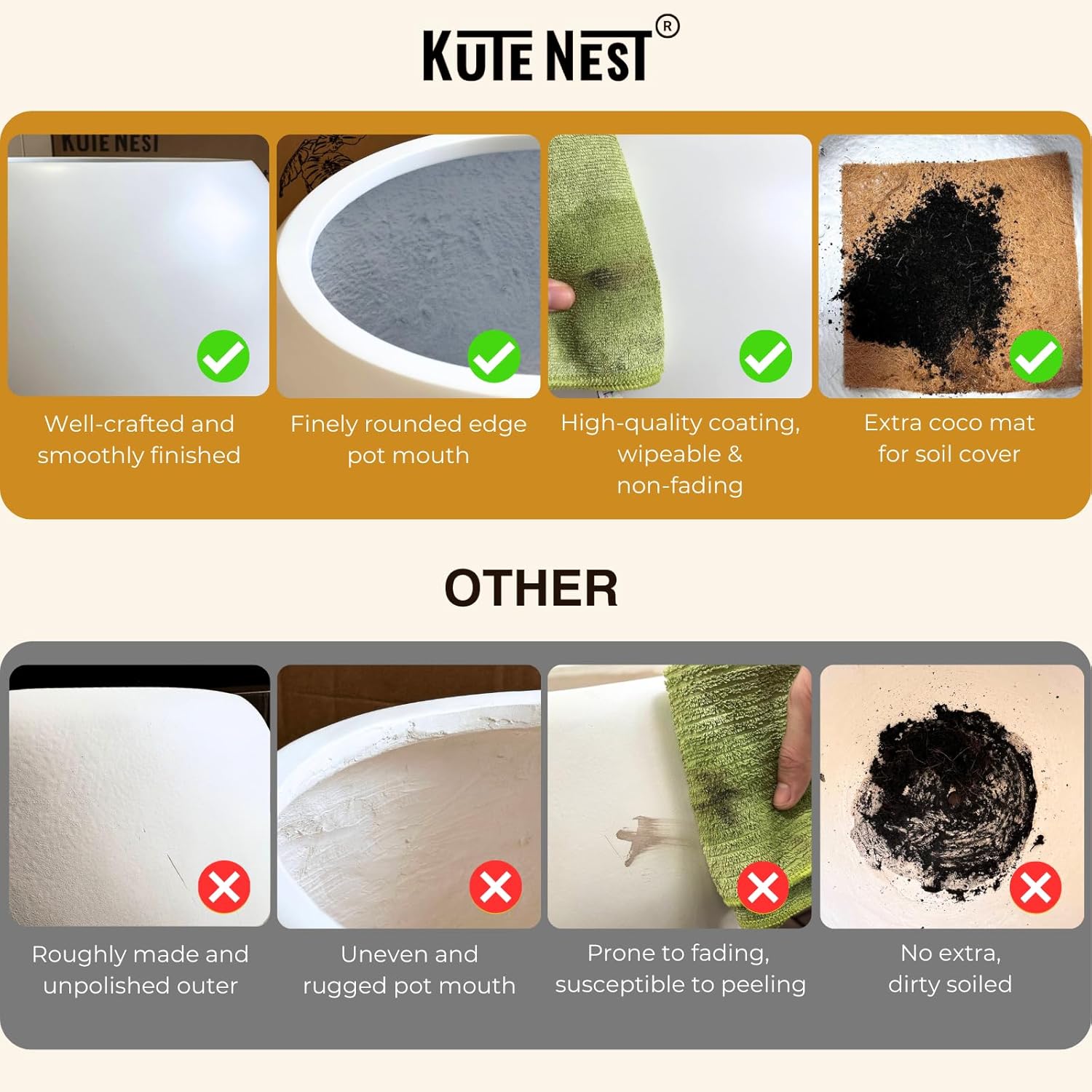 - πππππππ πππππππππ: With the unique feature of contract-grade fiberstone, KUTE NEST planters for indoor plants are weather-resistant, with rare issues like cracking or fading. Fiberstone planters are also easy to maintain, requiring minimal effort to keep your tall planters for indoor plants, round planters, or large pots pristine over time.