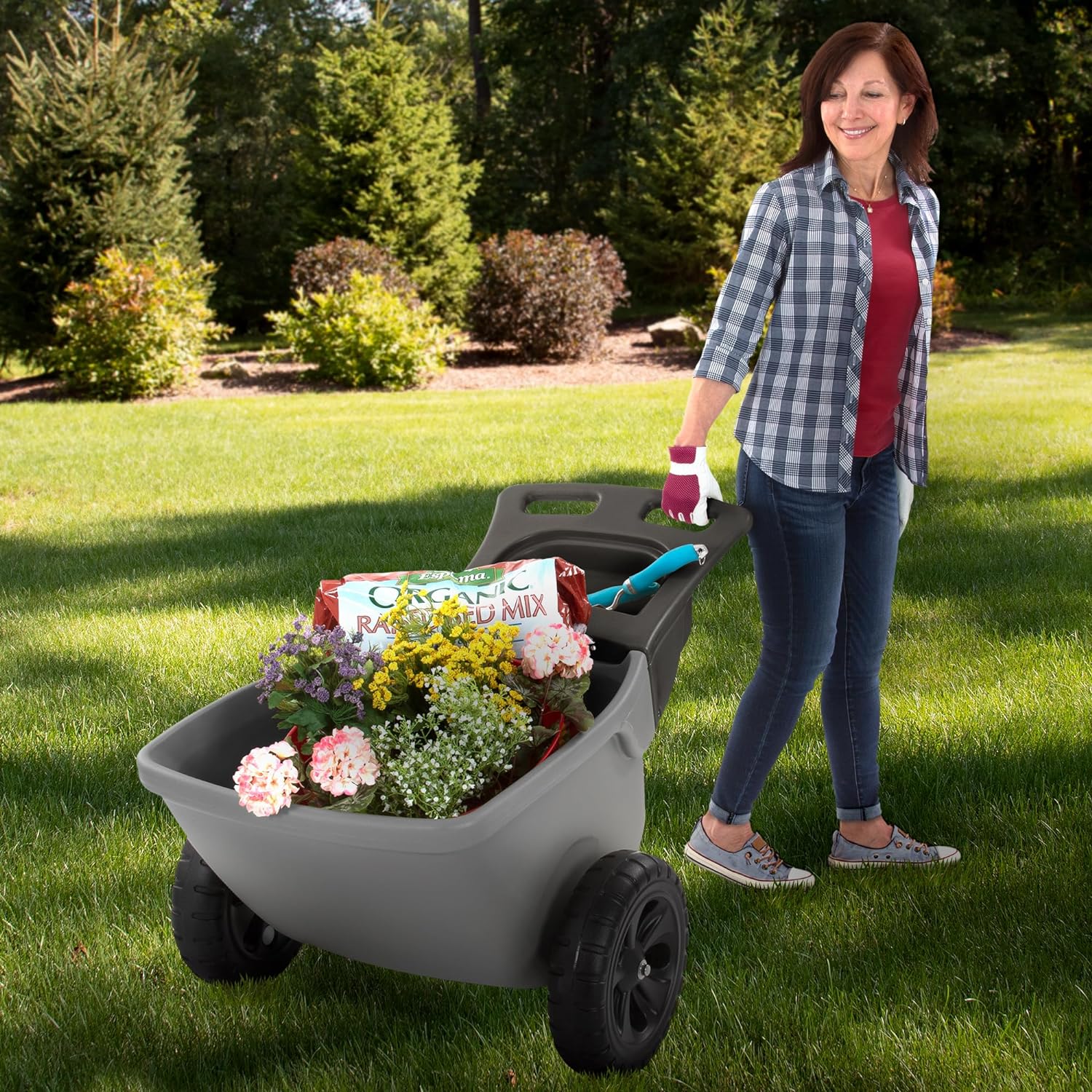 - EASY ROLLING GARDEN CART: Two large wheels are designed for easy rolling, turning, pivoting, and maneuvering. Smooth handle is easy to grip for stable loading, moving, and unloading.