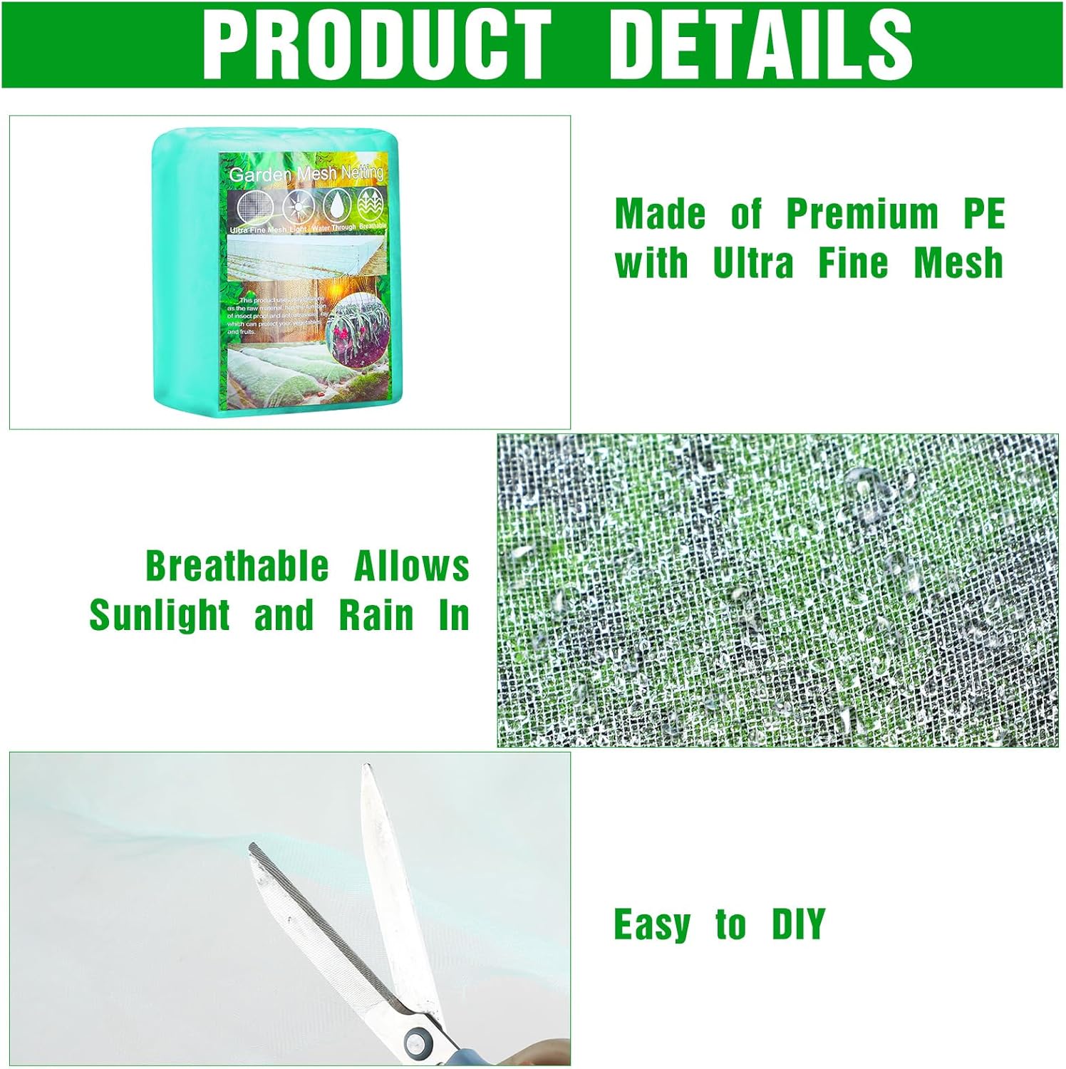 - Comprehensive Protection: The fine mesh design of this garden netting pest barrier offers strong protection against birds, insects, and small animals, while still allowing sunlight, air, and water to pass through; No need to remove the garden net for watering or fertilizing, just apply treatments directly through the mesh for hassle-free plant care