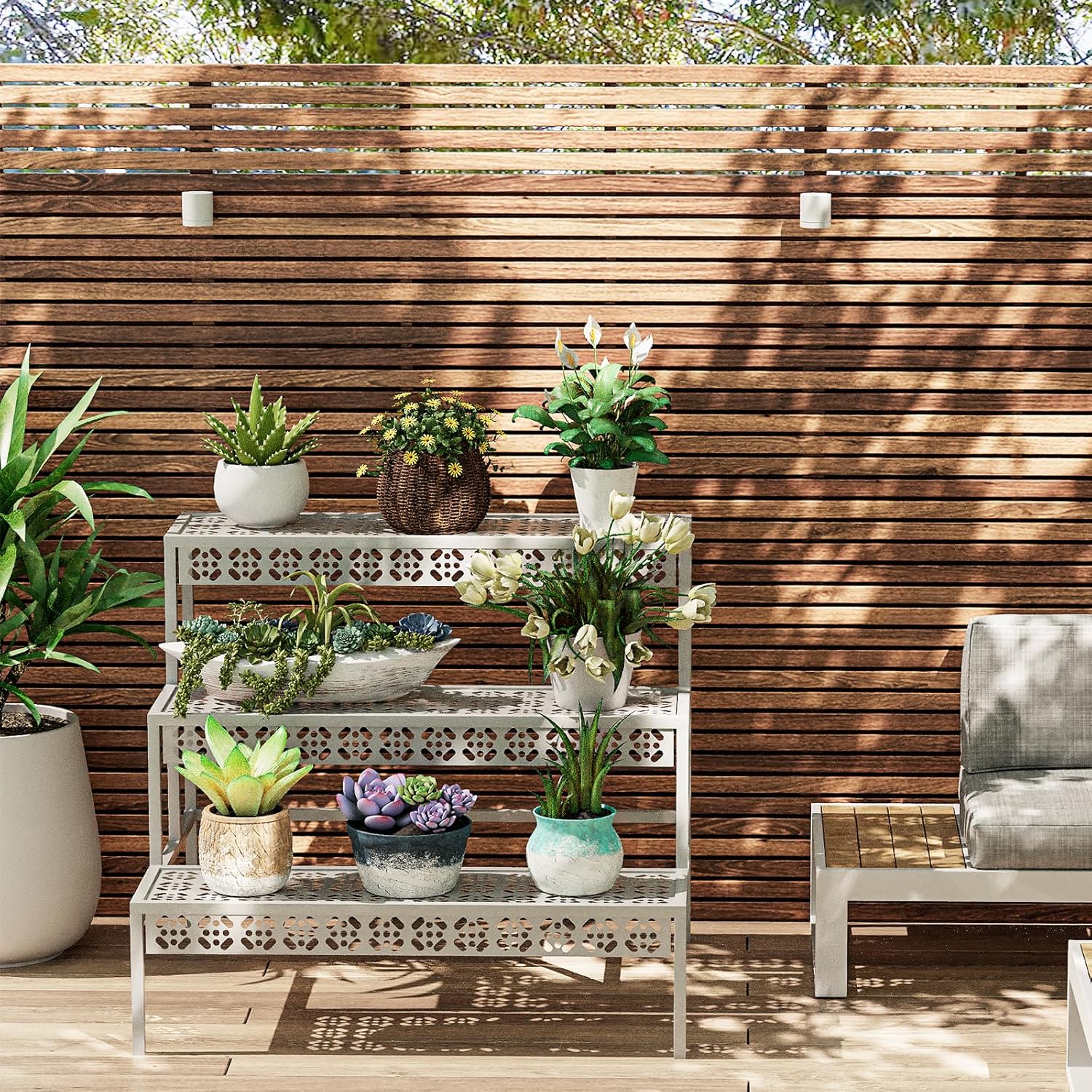 Garden 4 you 3 Tiers Metal Plant Stand,Rectangular Ladder Flower Pots Outdoor Plant Rack, Indoor Plant Display Rack, Heavy Duty Utility Storage Organizer for Home Garden Patio Balcony, Stair Style(White)