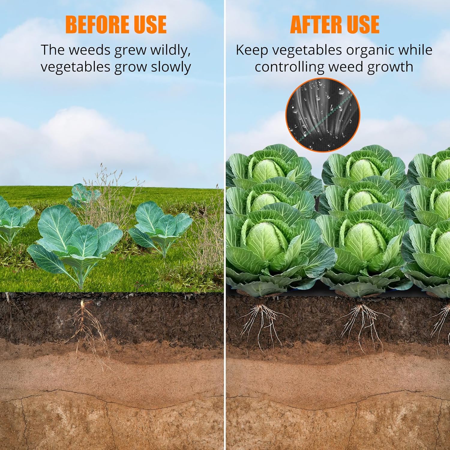 - 【Weed Control & Soil Improvement】: This garden fabric allows soil to breathe, retain humidity, and features a black color for better shading performance without harming the earth, offering long-term weed protection under various weather conditions.