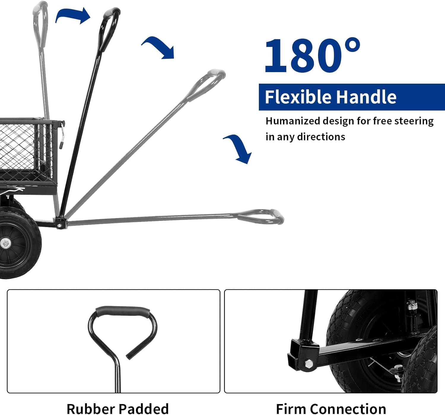 BILT HARD 10" Flat Free Tires Heavy Duty Garden Cart with 180° Rotating Handle and Removable Sides, 4 Cu.Ft 400 lbs Capacity Utility Steel Wagons for Outdoor