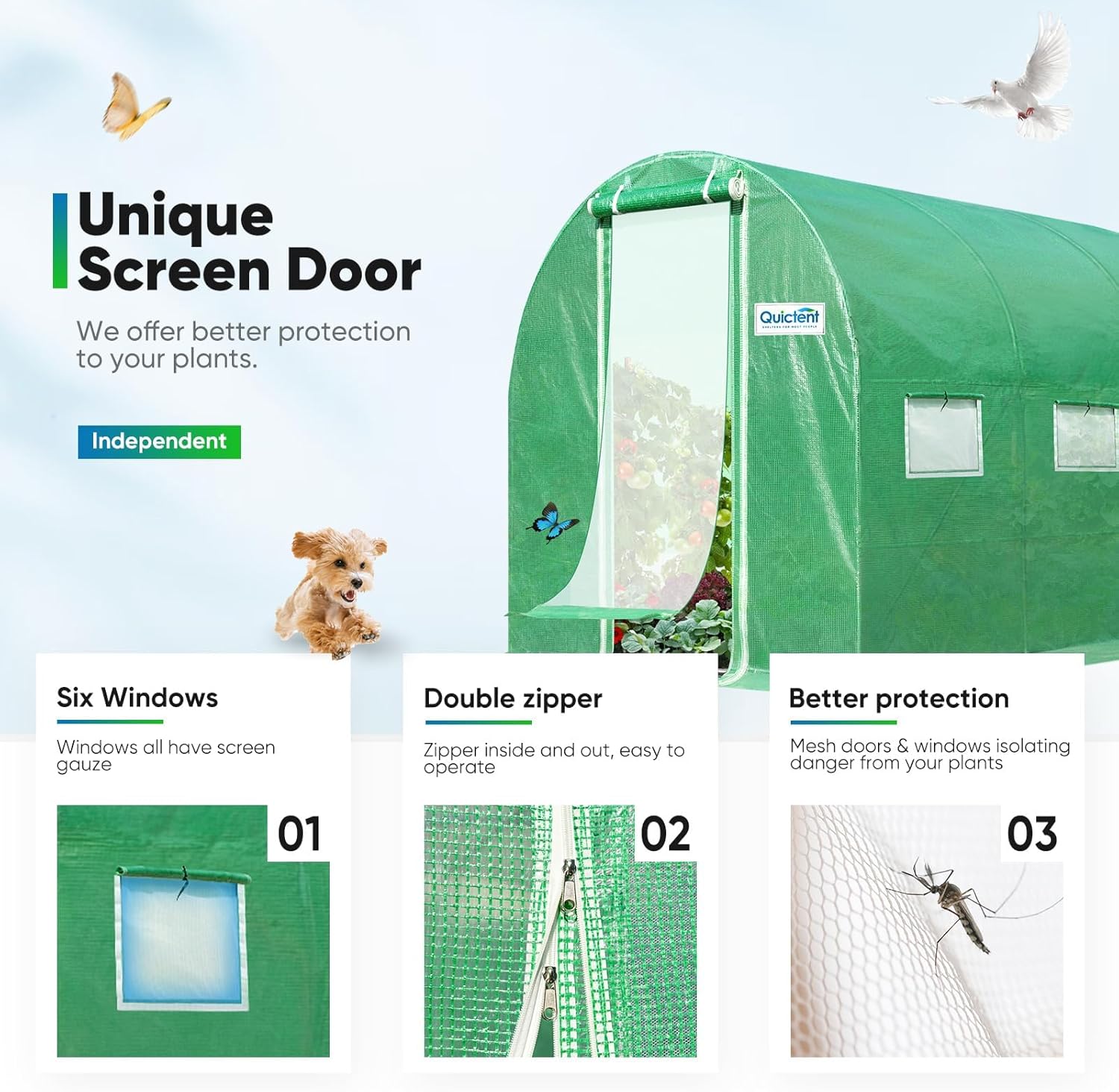 Quictent Premium Greenhouse for Outdoors, 10x6.6x6.6FT Upgraded Portable Walk-in Heavy Duty Frame Large Garden Plant Hot Outside Hoop House, 6 Ventilated Screen Window and Zipper Screen Door, Green