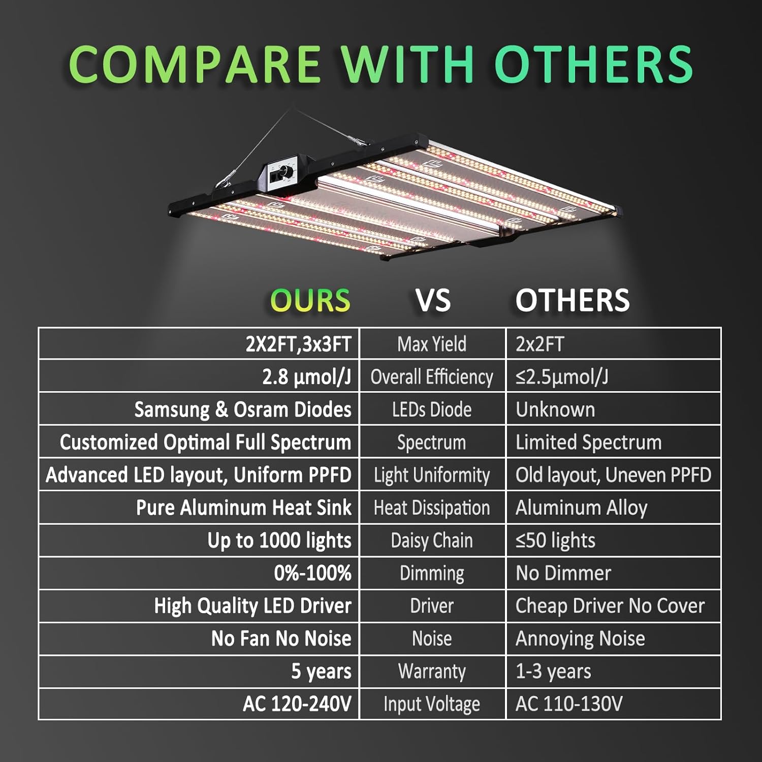 - ☀ Ideal For All Growth Stages: Excellent full spectrum- 4000K providing more white light and the 660nm light, it is especially useful during bloom where it speeds up flowering time and boost yields. Uniformly across the surface and deep into the roots and bottom of canopy for consistent, highest quality flowers.