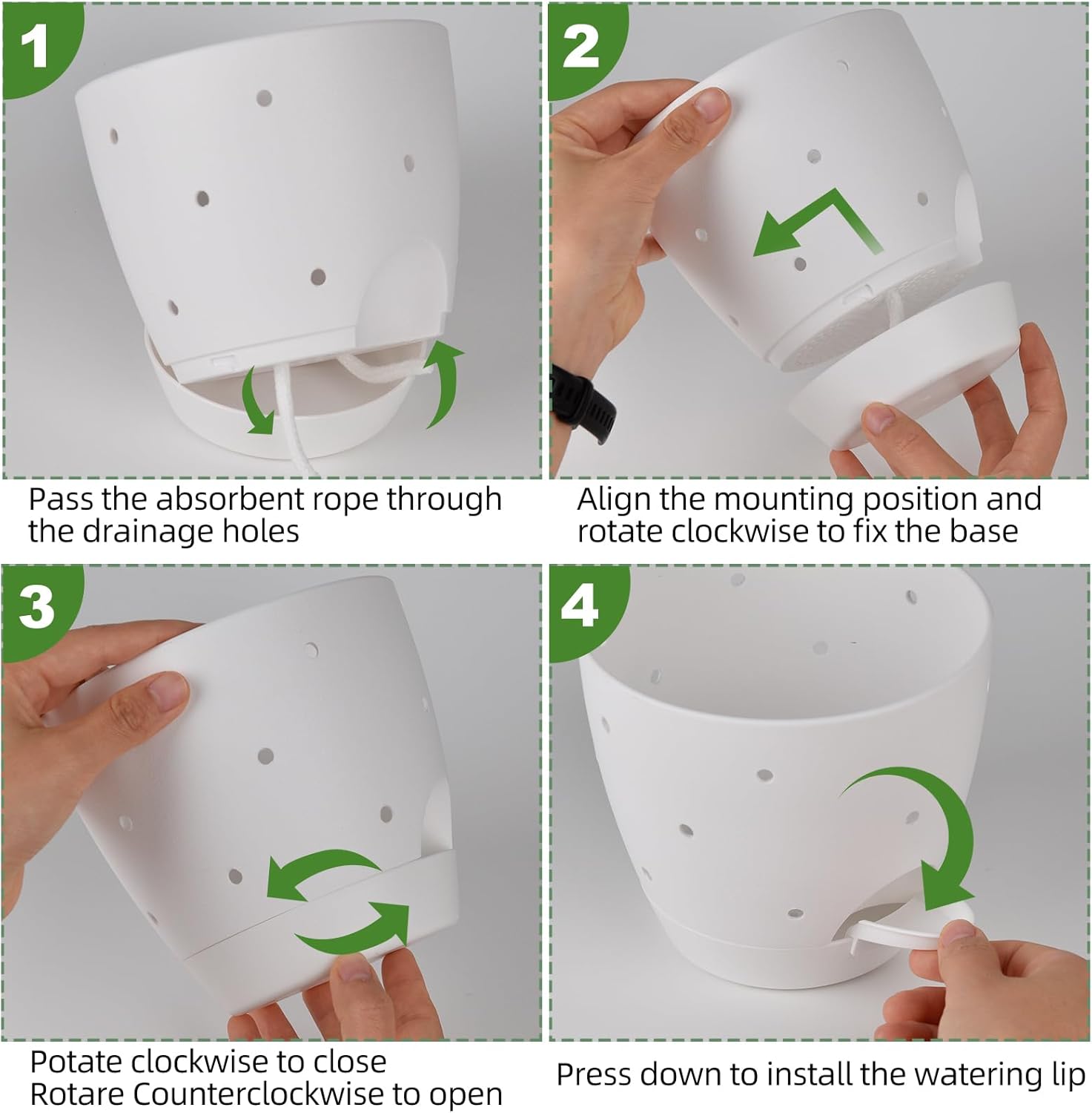 - Removable Tray - The plastic orchid pots come with a detachable tray that can be installed clockwise and removed counterclockwise. Each self watering plant pots includes a watering lip for easy watering and a clear view of the water level.
