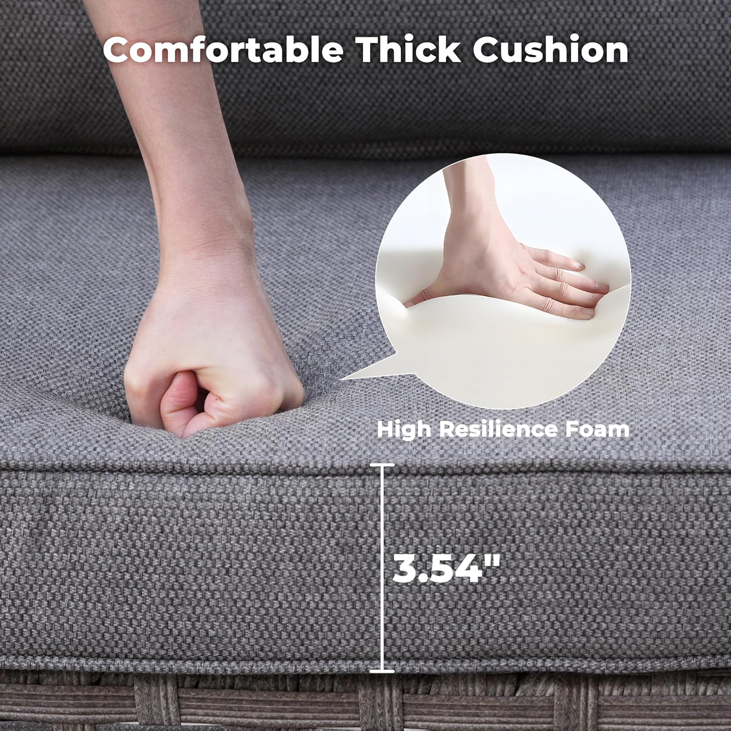 - All-weather Wicker Rattan: Our outdoor sofa sets have very durable PE wicker rattan for all-weather use and a natural texture with good coloring. The high-quality patio seating made of powder coated steel frame ensures good strength and stability
