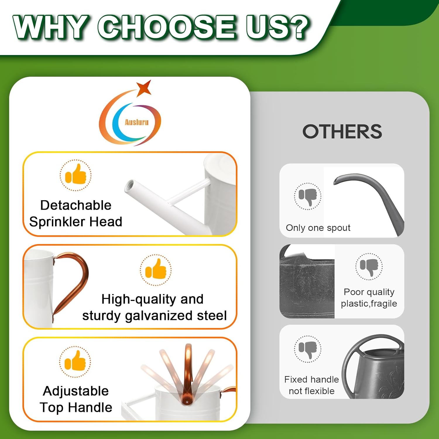 - Stylish and Functional: Whether you're a seasoned gardener or just starting out, this 1-gallon metal watering can is a stylish and functional addition to your gardening arsenal. Its elegant design and high-quality construction make it perfect for both indoor and outdoor use, simplifying the task of watering your plants.