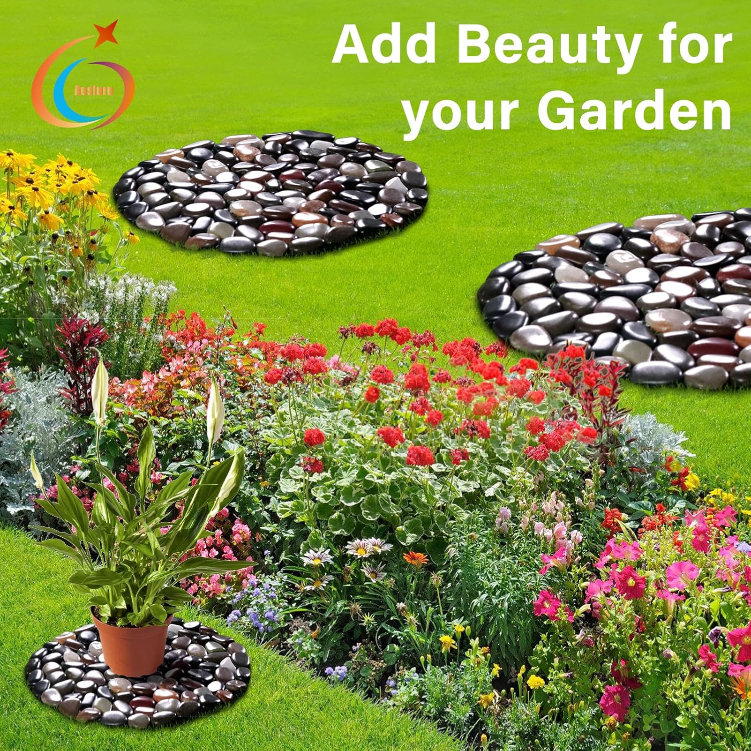 10in River Rock Stepping Stones Set - 6 Pack | Polished Pebble | Long-Lasting PVC Mesh Backing | Perfect for Garden Paths and Lawns Outdoor Landscaping Decoration | Mixed Circle