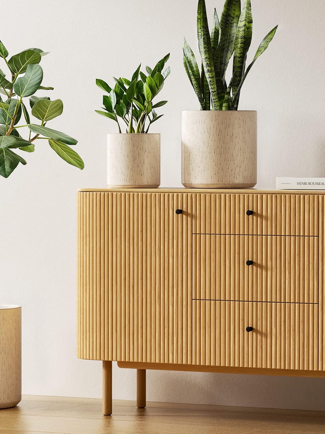 - Multiple Sizes: This collection includes planters in three dimensions; large (10 inch diameter and 10 inch height), medium (8 inch diameter and 8 inch height), and small (6 inch diameter and 6 inch height); suitable for a variety of indoor plants such as snake plants, African violets, moss poles; the spacious design ensures ample room for your plant companions to thrive and flourish in a healthy environment