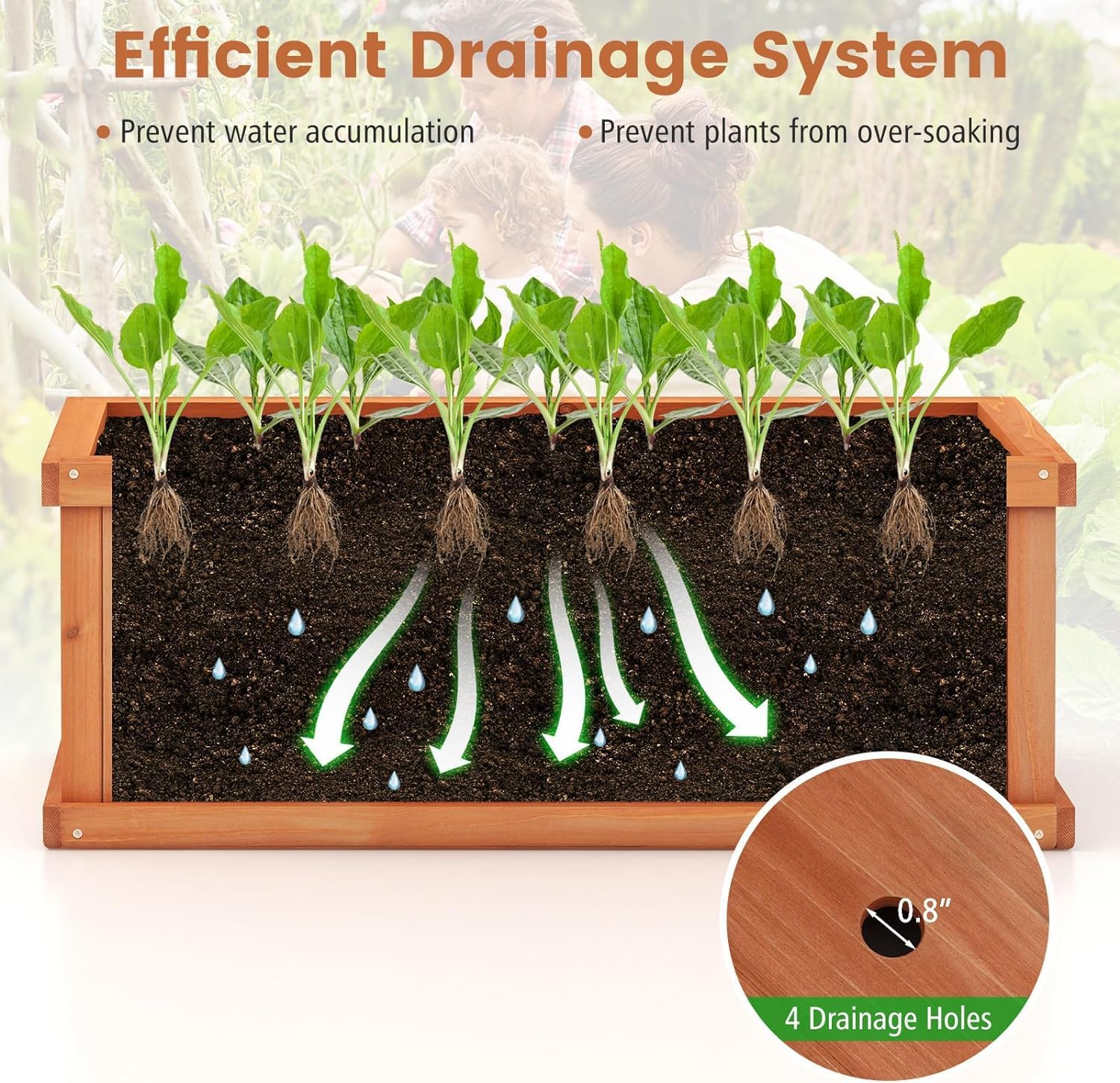 LDAILY Raised Garden Bed, Outdoor Rectangle Flower Beds with 4 Detachable Bottom Panels & Drainage Holes, Wood Planter Box for Flowers/Vegetables/Herbs in Backyard Patio