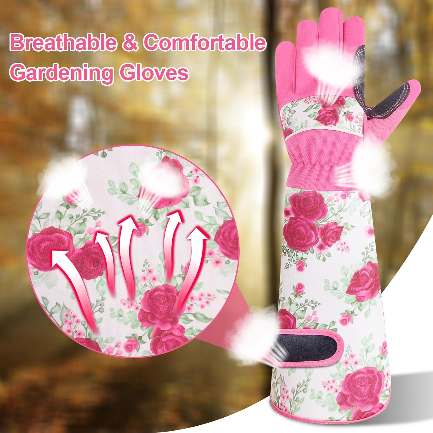 DLY Gardening Gloves for Women, Rose Gloves Gardening Thorn Proof, Long Garden Gloves for Women, Breathable & Durable Leather Gauntlet(Medium, Rose Red)