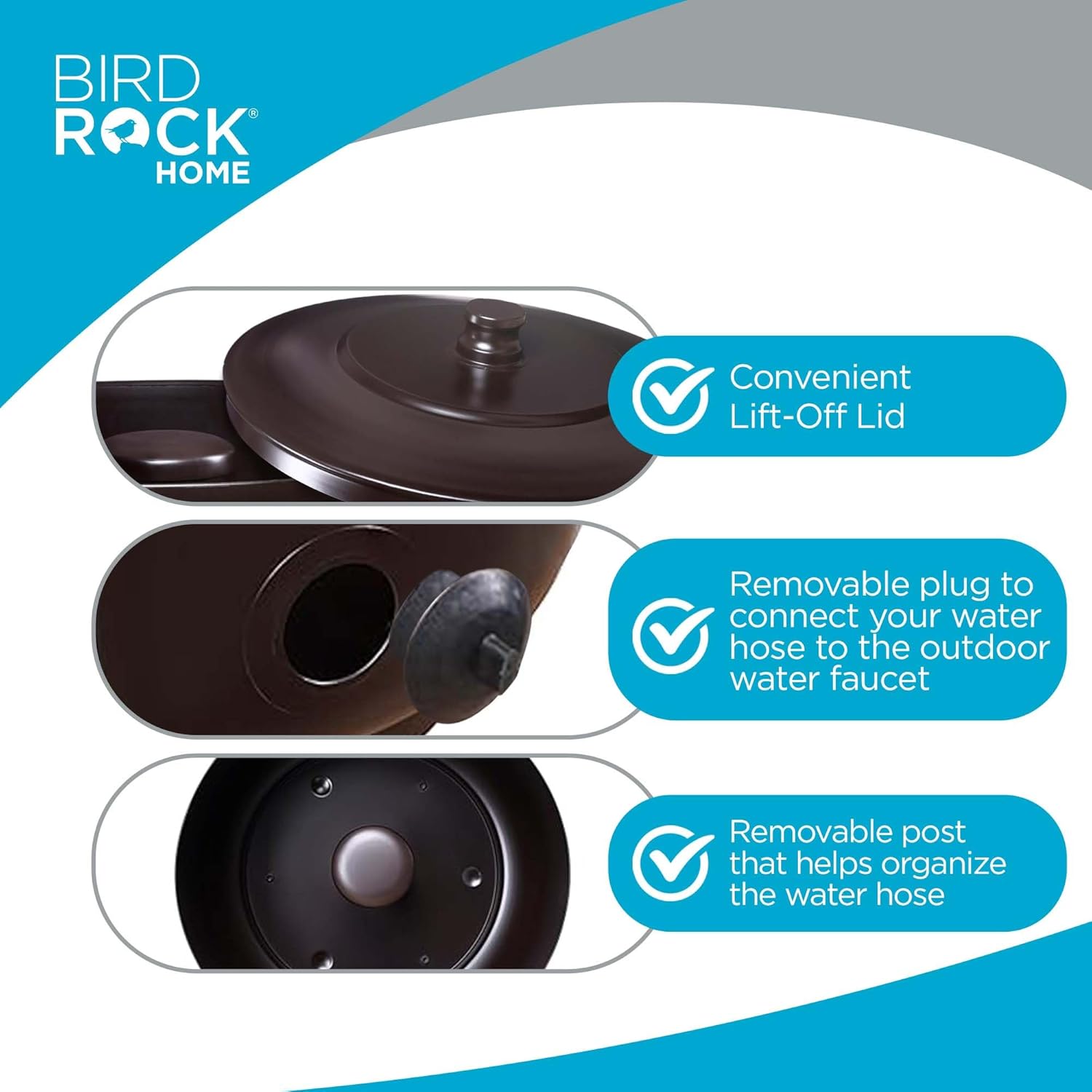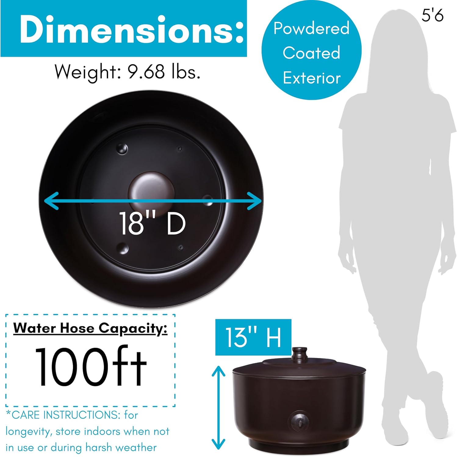 BirdRock Home Decorative Footed Water Hose Holder Pot with Lid | Holds 100ft Hose | Ground Garden Box | Powdered Coated Steel | Metal Hider | Outdoor or Indoor (Oil Rubbed Bronze)