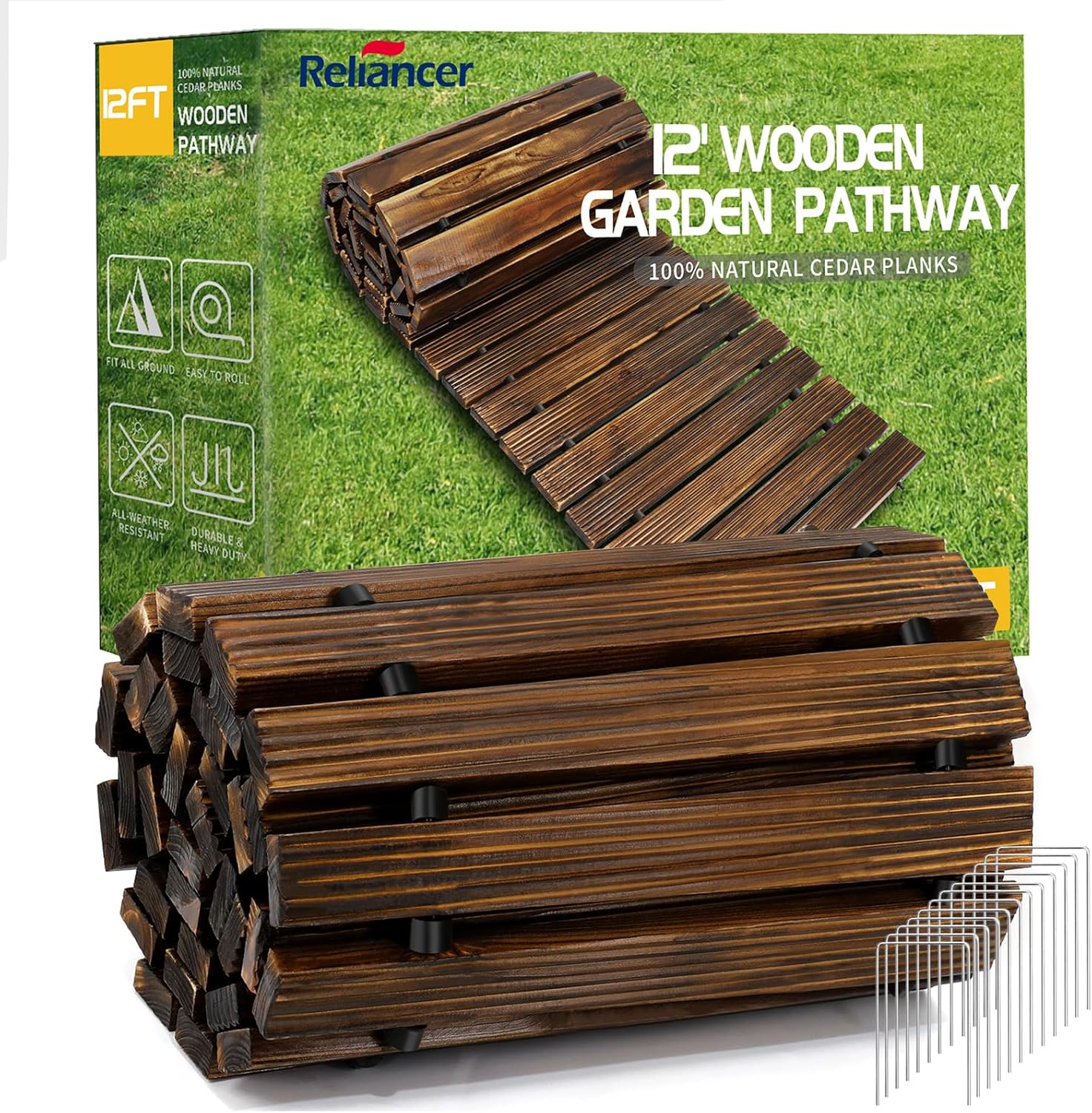 - Generously Size:Measuring 12FT in length and 17 inches in width,these garden walkway provides a full 8' of length to let you cover more ground in an instant,brings sufficient area for you to walk through!This is the most convenient and cost-effective tool to create the elegant and exotic hardwood deck that you have always dreamed of!Design a multifunctional pathway,or charming landscape decor with our roll-out wood garden walk-way,add instant and rustic touch to your outdoor surroundings