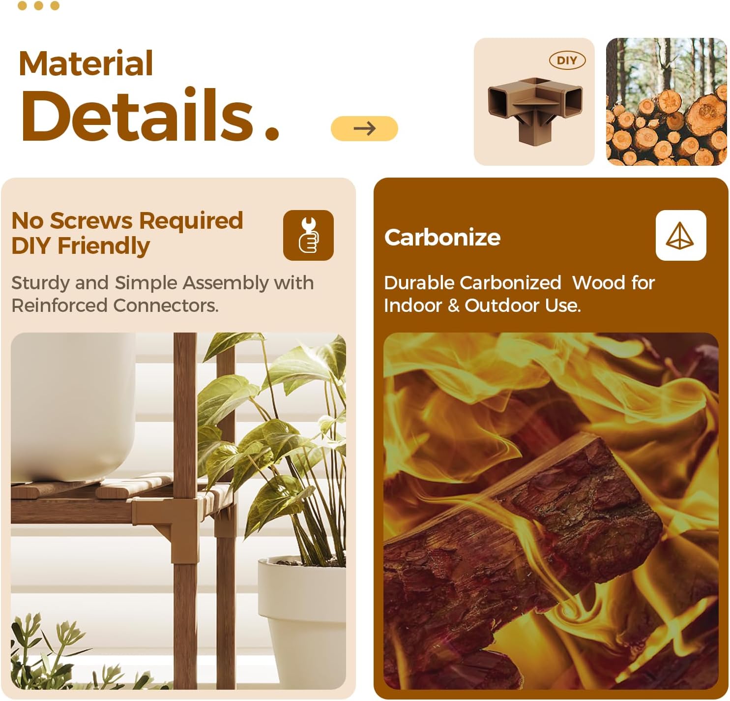 - Durable and Sturdy:This plant stand requires no screws, making it perfect for DIY enthusiasts. Utilizing the clever application of the triangular stability principle, it enhances stability. Additionally, plastic joints reinforce the structure of the plant stand, ensuring its durability.