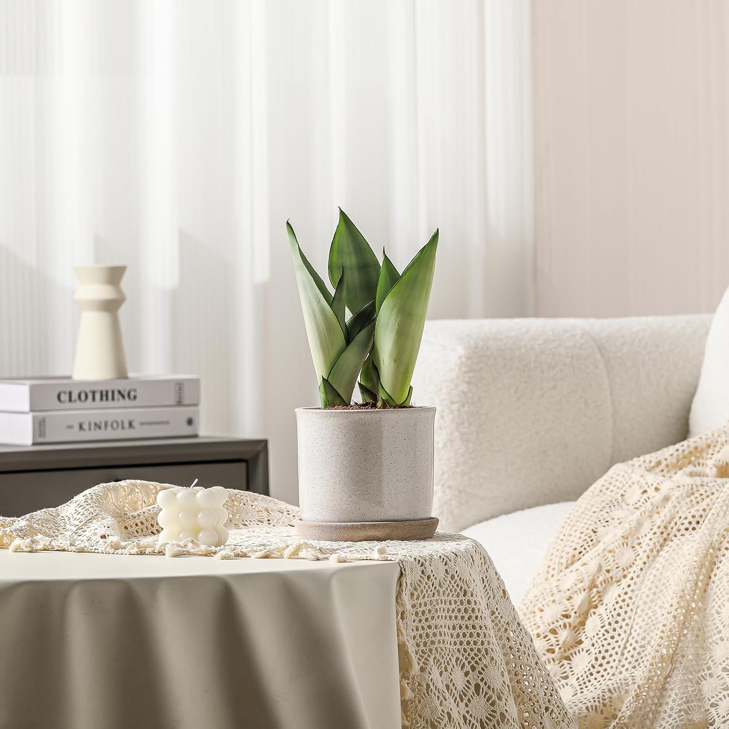- 6-inch Planter Pot: This pot is 5.8 inches in diameter and 5.4 inches high, with an elegant shape