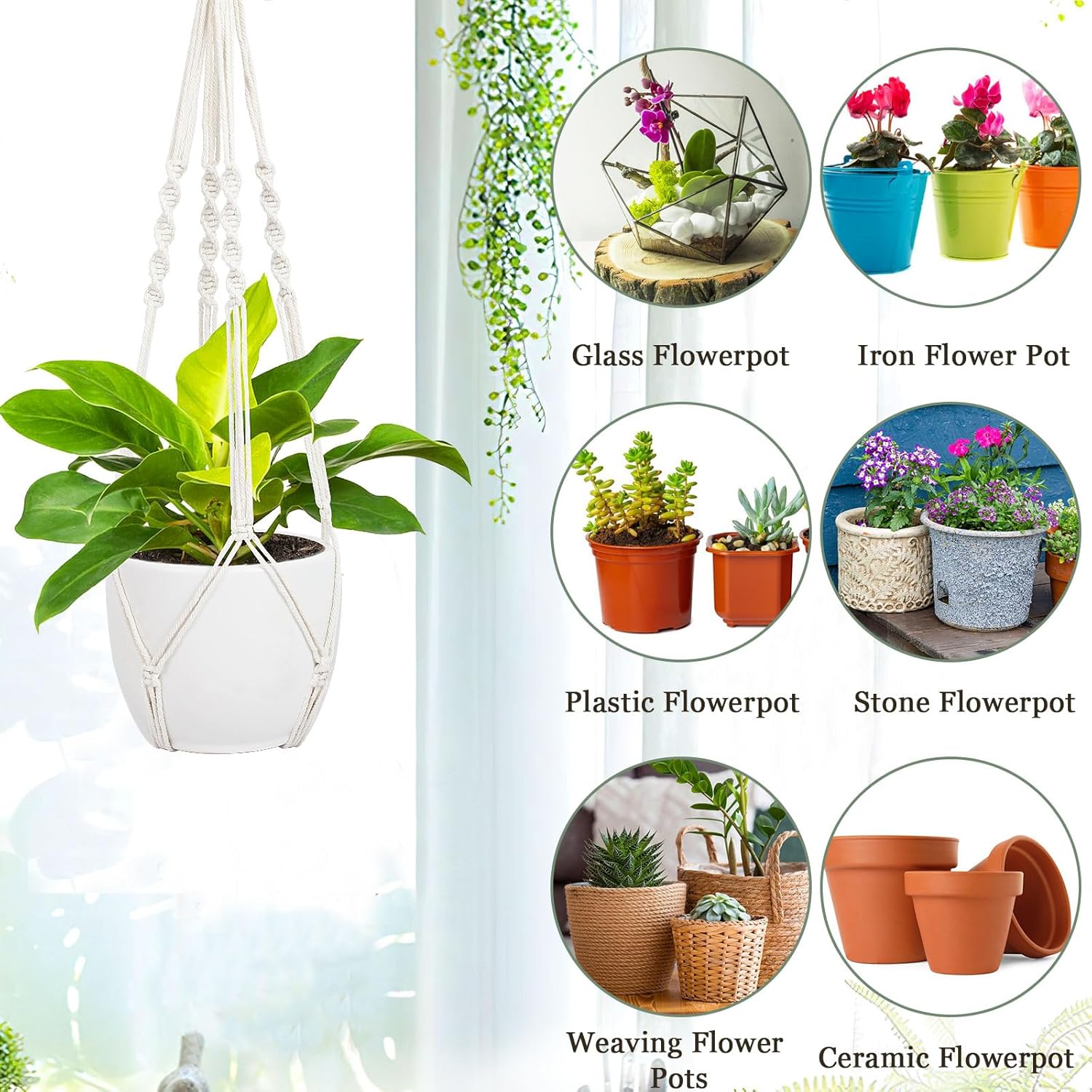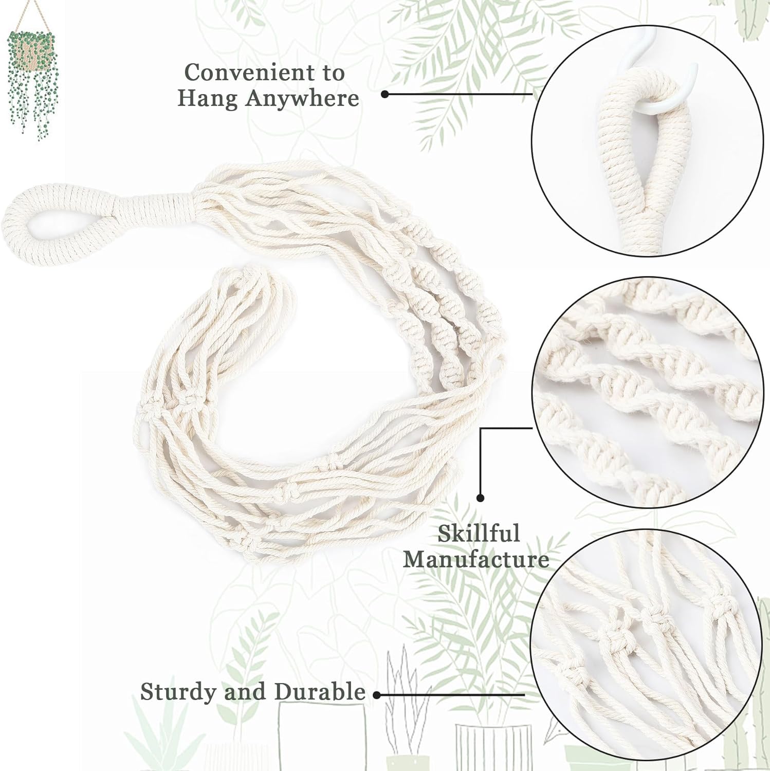 - PREMIUM MATERIAL - Made of natural cotton, environmentally friendly , hold up the beautiful plant pot, planters are lightweight enough to hang anywhere indoors or outdoors