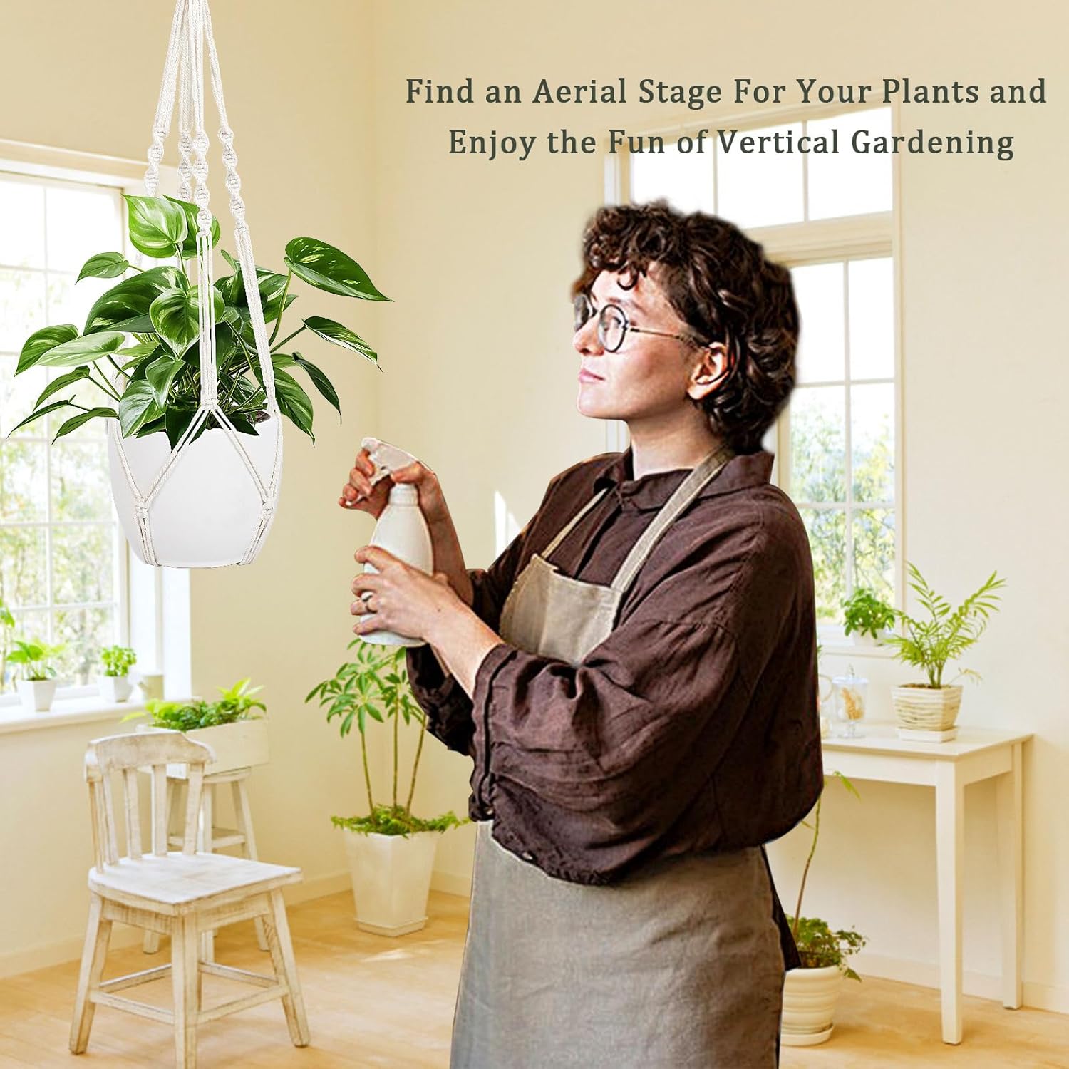- FASHION AND UNIQUE - plant hanger indoor exudes modern artistic beauty and unique humanistic flavor. In the yard, balcony, or living room. It also lets to keep your plants out of your pet's reach or as a convenient space saver