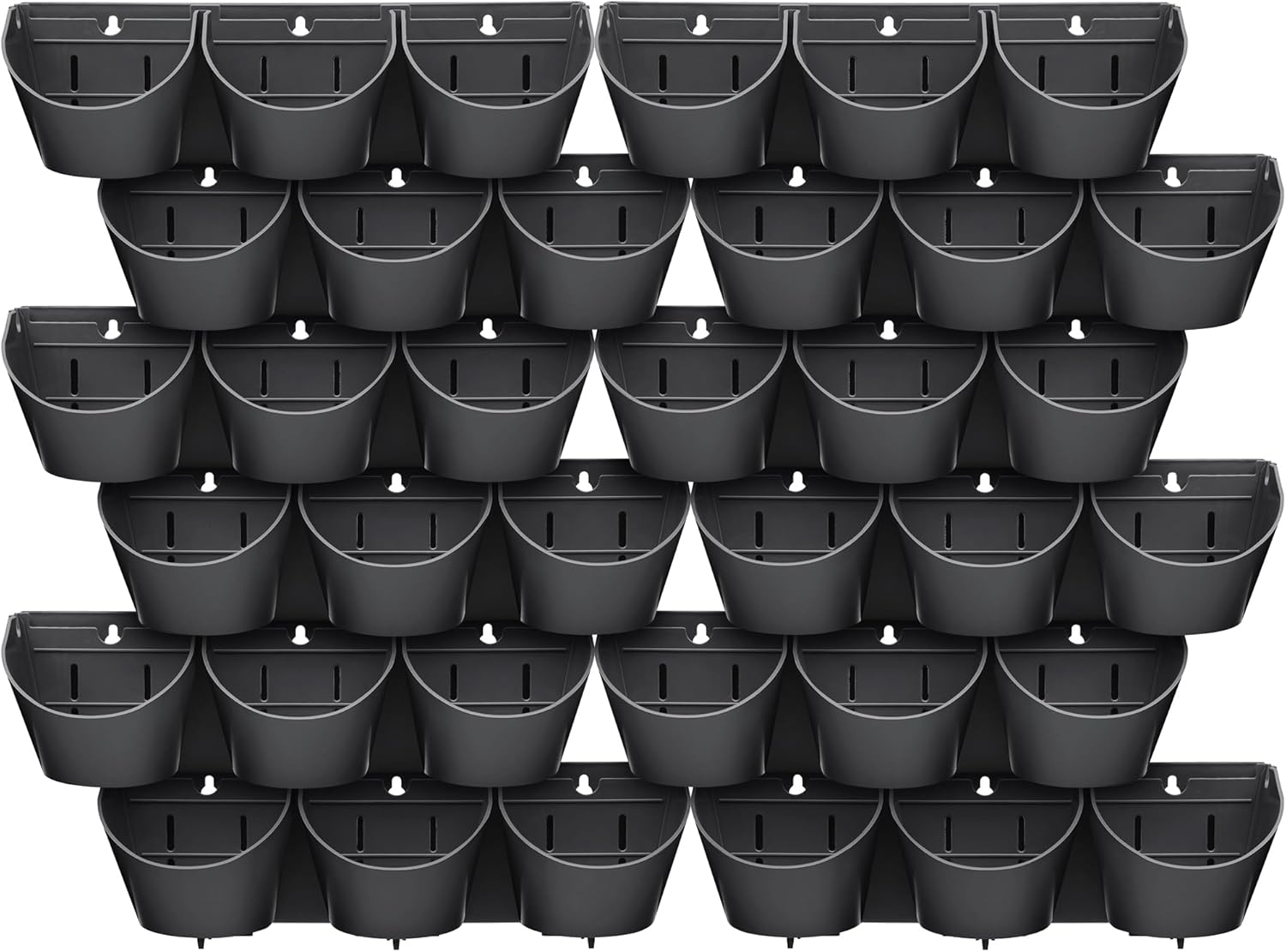 - INCLUDES 12 MODULAR WALL PLANTERS: Weโve included 12 3-pocket planters within our wall mounted hanging planter for you to create layers of potted plants for your vertical garden; Use a few wall hanging planter in one area or use them all; You can even add more layers to your vertical garden by purchasing additional compatible vertical garden pots; 12x 3-pocket planters make up 6.4ftยฒ, total of 36 plants required