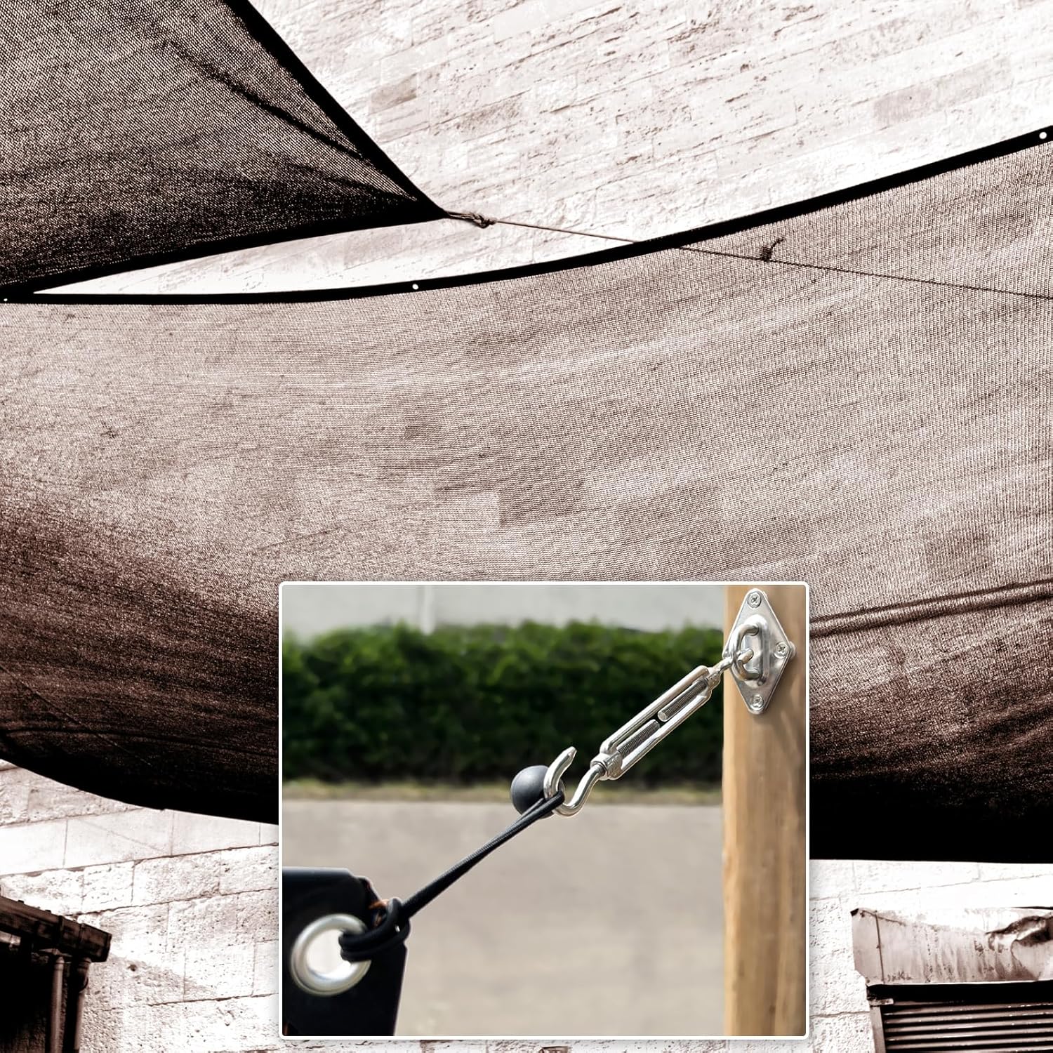 - 【Superior strength and durability】: Shade Sail Hardware Kit 6 inch turnbuckles is constructed of high quality 304 grade stainless steel to withstand harsh weather such as typhoons and scorching sun.