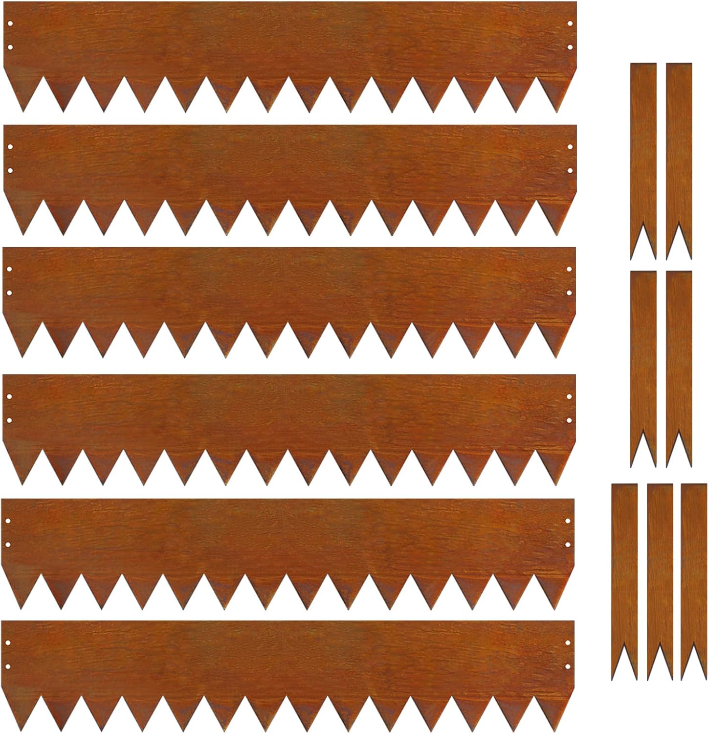 - HEAVY DUTY CORTEN STEEL MATERIAL - Our metal garden landscape edging is made of heavy duty corten steel for durability. The unique large tooth design ensures stability and strength, providing lasting support for your outdoor space. Take care to wear gloves during use