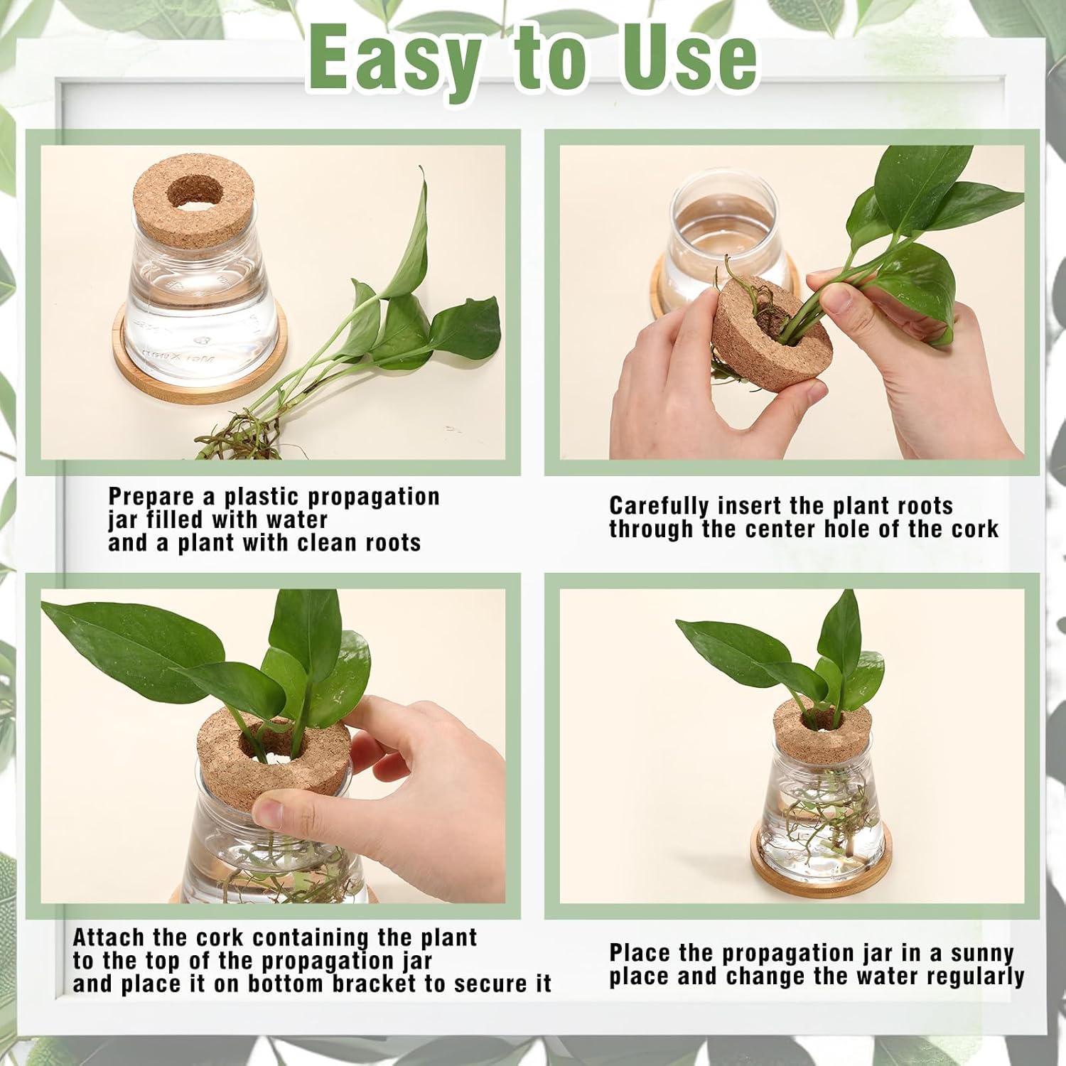 - Reliable Materials: plants propagation vases are made of plastic, not easy to break or be fragile; Cork toppers are made of wood, preventing excessive water evaporation, independent bamboo saucers are made of bamboo, suitable for home, adding a touch of natural charm to settings