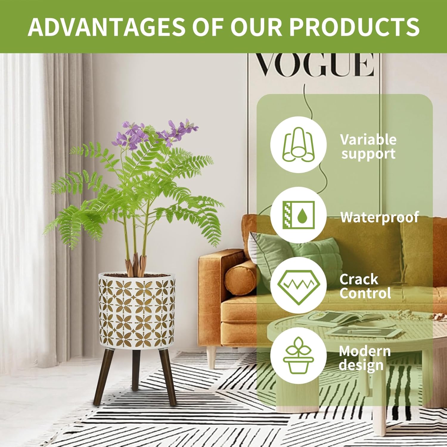 - Dimensions: The vertical pot has an outer diameter of 12 inches and a height of 11 inches. With the addition of the oak legs, the total height reaches 20.5 inches, providing ample space for plant growth. Whether you prefer larger or smaller plants, its spacious design accommodates both.