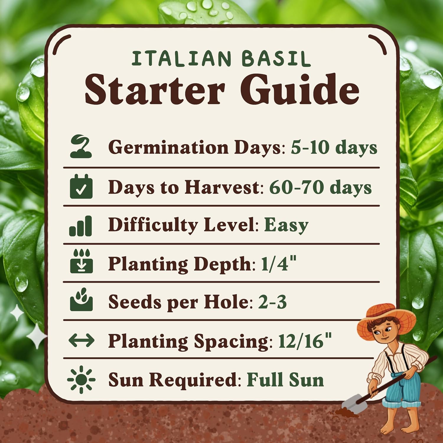 Seedboy 250 Organic Basil Seeds for Planting Indoor and Outdoor, Non-GMO and USDA Certified Herb Seed Packet for Hydroponic Garden Indoor or Planting Outdoors (Genovese Basil)
