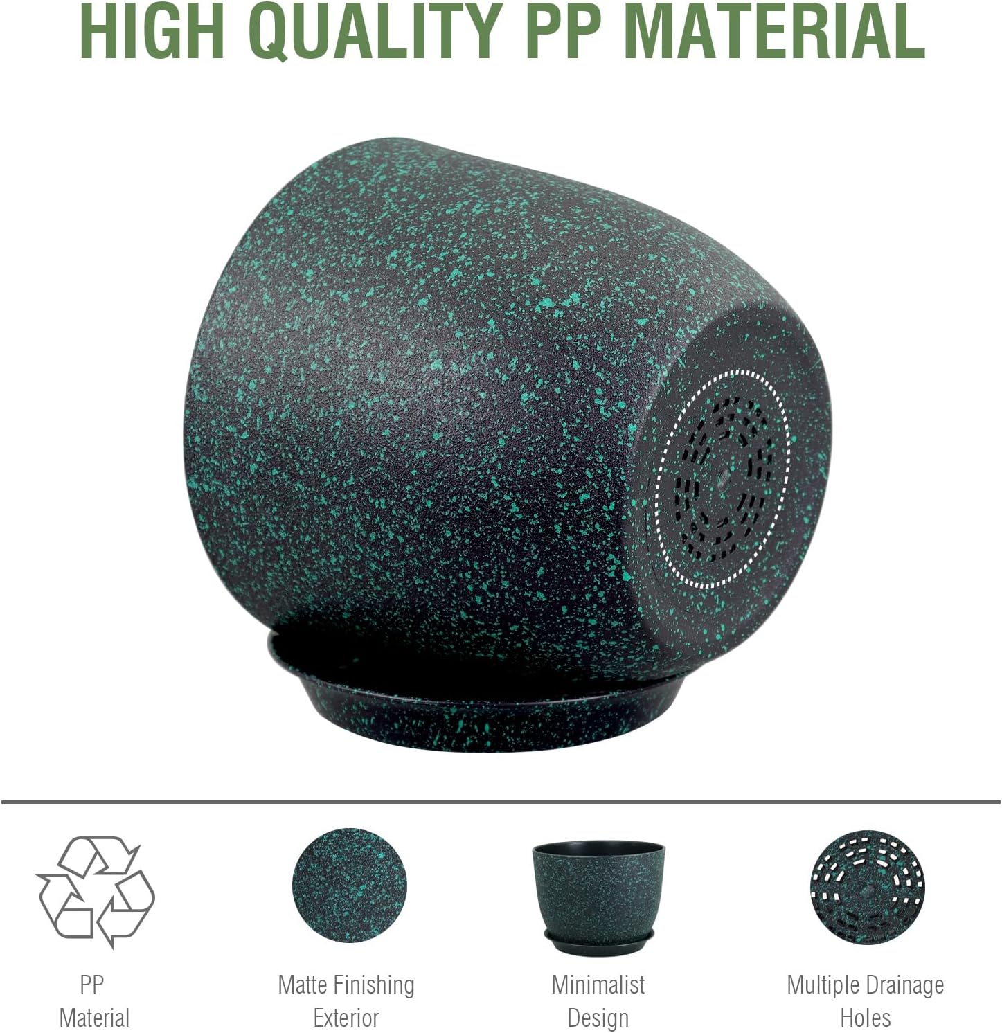 12 inch Large Plant Pots, Plastic Planters with Drainage Holes and Saucers, Flower Pots for Indoor Outdoor Plants, Decorative Pots for Garden House Plants, Black with Green Speckles