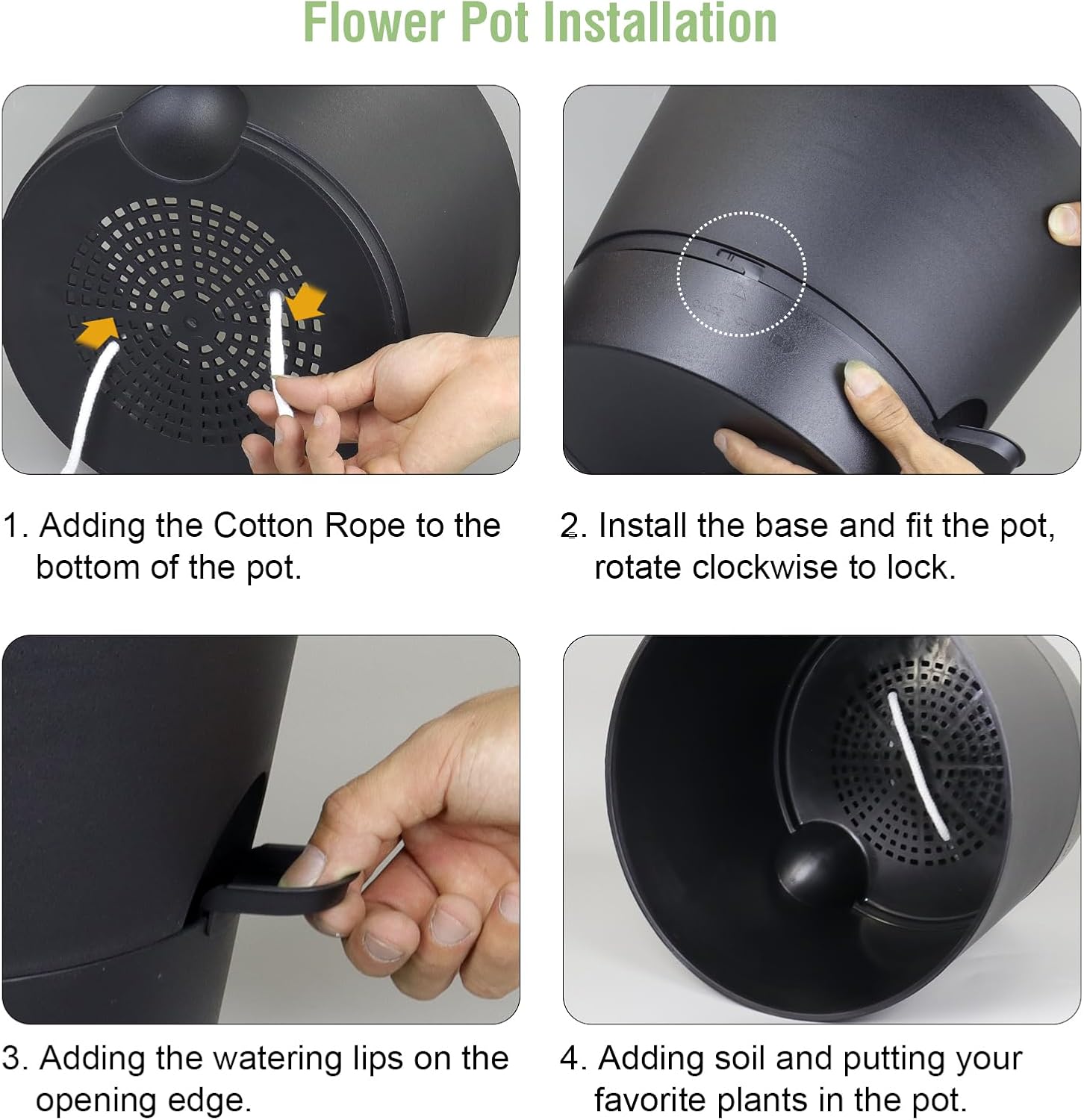 - 【Self-Watering Design】 Self-watering pots is includes a water reservoir at the bottom of the planter. This flower pots automatically supplies water to your plants as needed by a cotton rope, reducing the frequency of watering and ensuring your plants never go thirsty. The reservoir design also helps maintain a consistent moisture level, fostering optimal growth conditions.