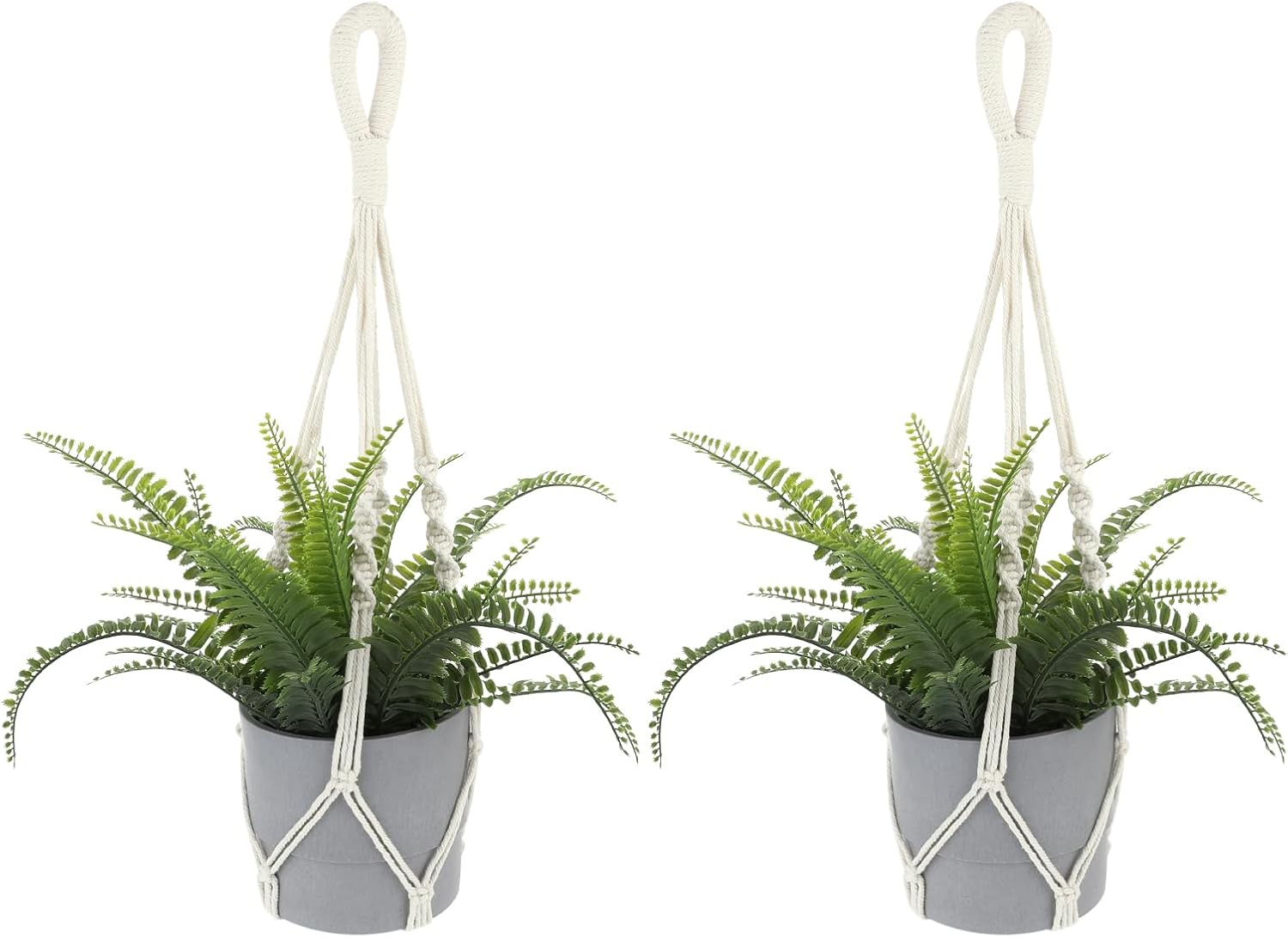 - HIGH QUALITY MATERIAL - The 2 pack plant hanger indoor is made of cotton cord. Sturdy, durable and premium quality. hanging basket has a strong flexible woven design that can accommodate various shapes and sizes of planters (pots not included).
