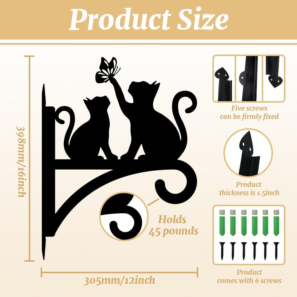 Peacoblue Iron Plant Hangers Hooks for Outdoor Indoor Hanging Plants Fern Pots, Lantern, Bird Feeder, Wind Chimes, 12โx14โ Cat Weather Resistant Metal Wall Brackets Holder for Porch, Garden, Home(Cat)