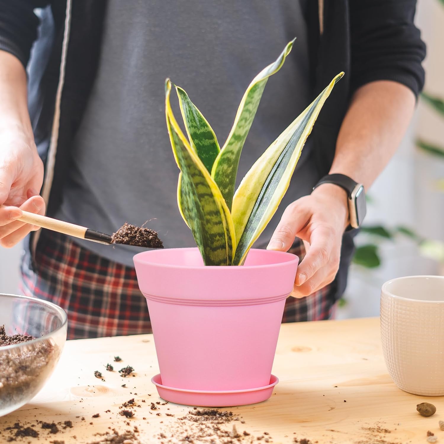 - 【Drainage Holes and Trays】Each plant pot features well-designed drainage holes at the bottom to ensure proper water flow. Additionally, saucers catch excess water, keeping your growing area clean and tidy while also ensuring that your plants remain hydrated without becoming waterlogged.