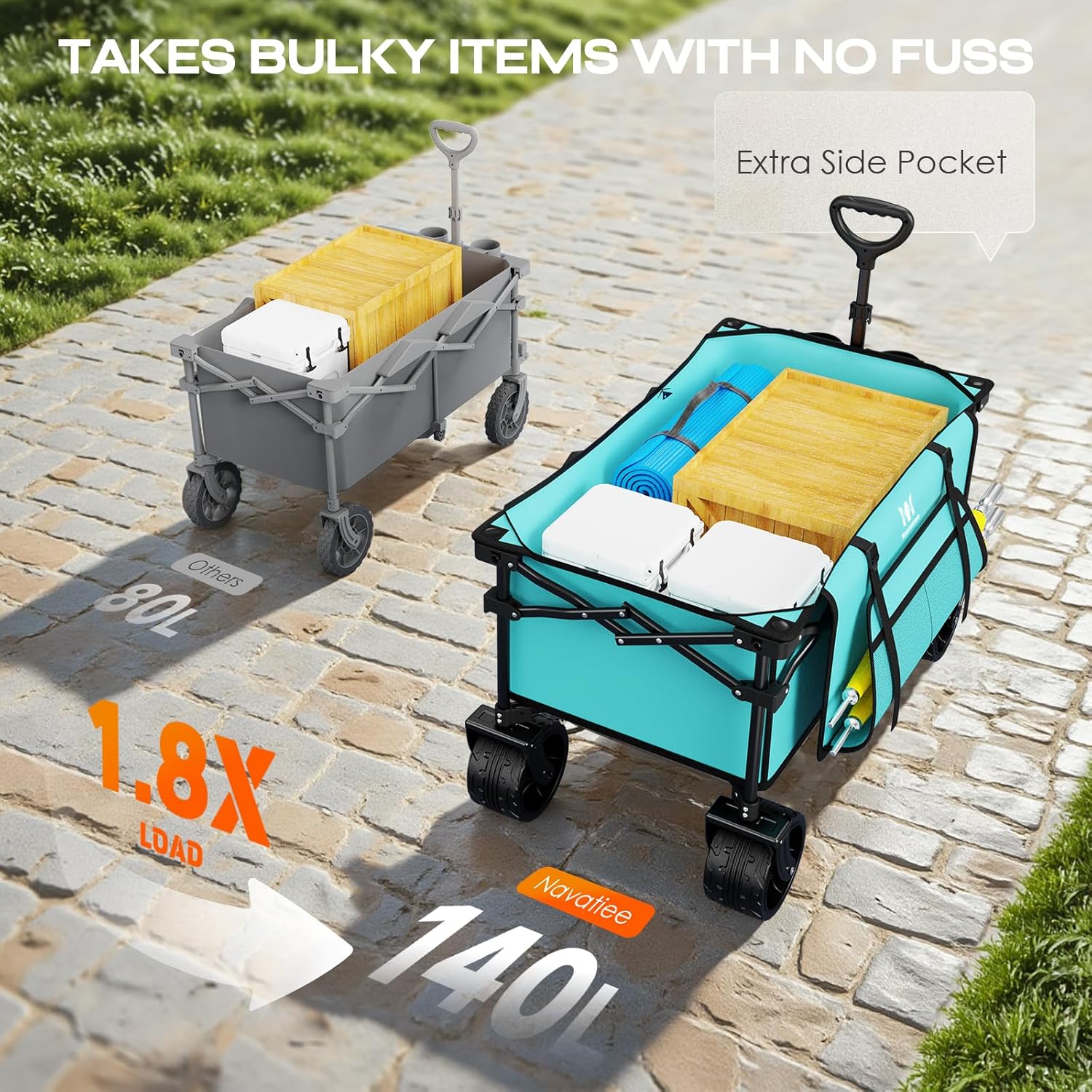 - BUILT TO LAST WAGON : Built with durability and sustainability in mind, our beach wagon comes with a high-strength steel frame and durable 600D oxford fabric. Solid frame construction wonβt buckle or lose shape. With a winning combination of performance, style and build quality, Navatiee wagons bring relaxation and joy to wagon users around the world.