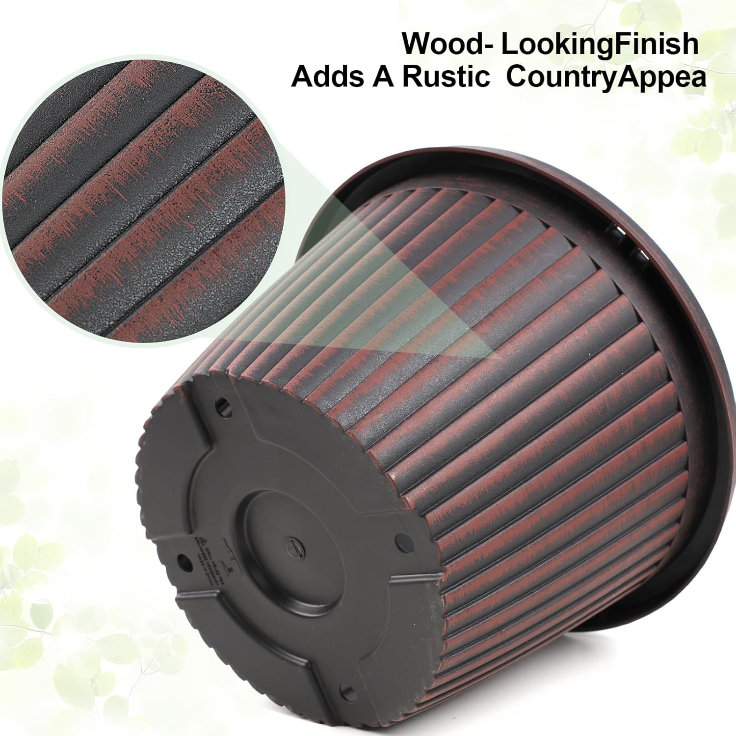 - 【MODERN STYLE PLANTERS】 Indoor planters with saucers provide a unique,nice style in ribbed design which gives an understated elegance that will enhance the beauty of your plant. These 14 inch plant pots are available in red-brown &blue-green & gold finished with a black antique stain. Plastic flower pots would be a beautiful addition to anyone’s deck or sunroom or house!