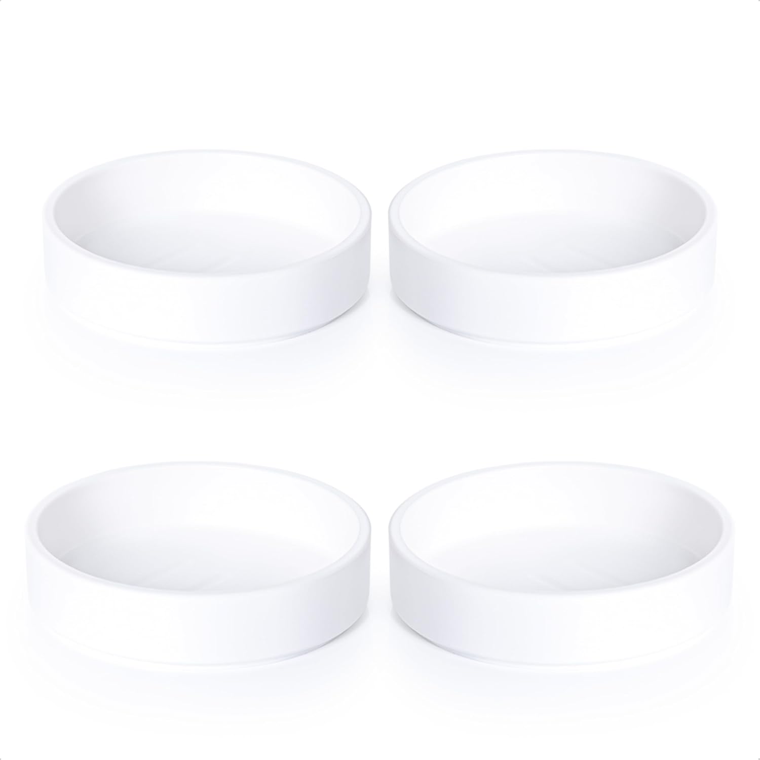 Phoenix Vine 4 Inch Plastic Plant Saucer Water Drip Tray, Heavy Sturdy Round Plant Drainage Tray for Indoors Outdoor, Set of 4, Matte White, 21-TY-4W-4