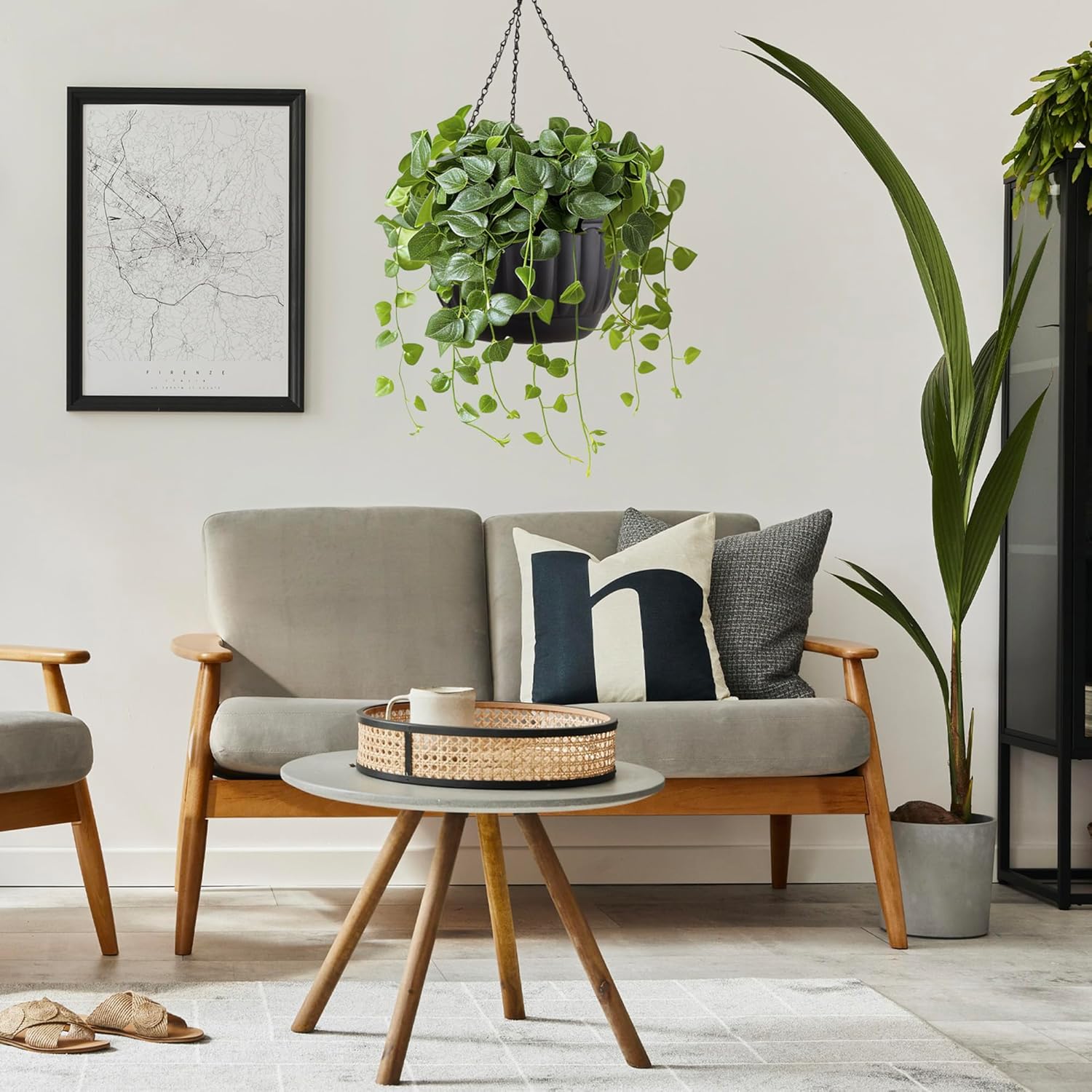 - Ideal Home Decor: Experience modern elegance with hanging baskets for plants indoor. These outdoor planter for porch feature a minimalist design, blending seamlessly with any color or decor. Gardening pots, planter & accessories are perfect for showcasing spider plants, vine plants, ivy, ferns, succulents, flowers, and more, black plastic pots for plants add a touch of simplicity and sophistication to your space.