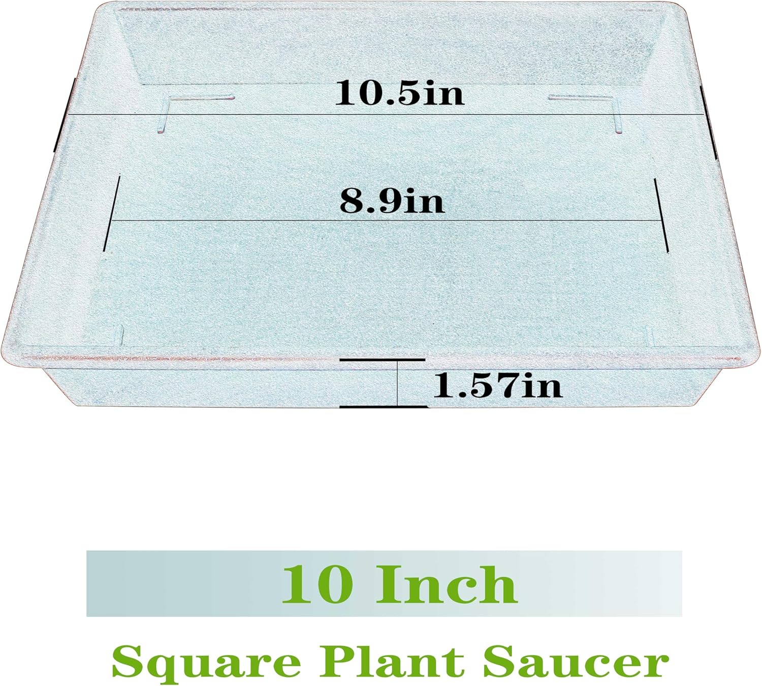 - Square Plant saucer 10 inch for indoors, This package inchudes 2 pack black 10 inch plastic square plant saucers, Each square plant saucer 10.5 inches at the top and 8.9 inches at the bottom, It can be used indoors and outdoors plant tray.