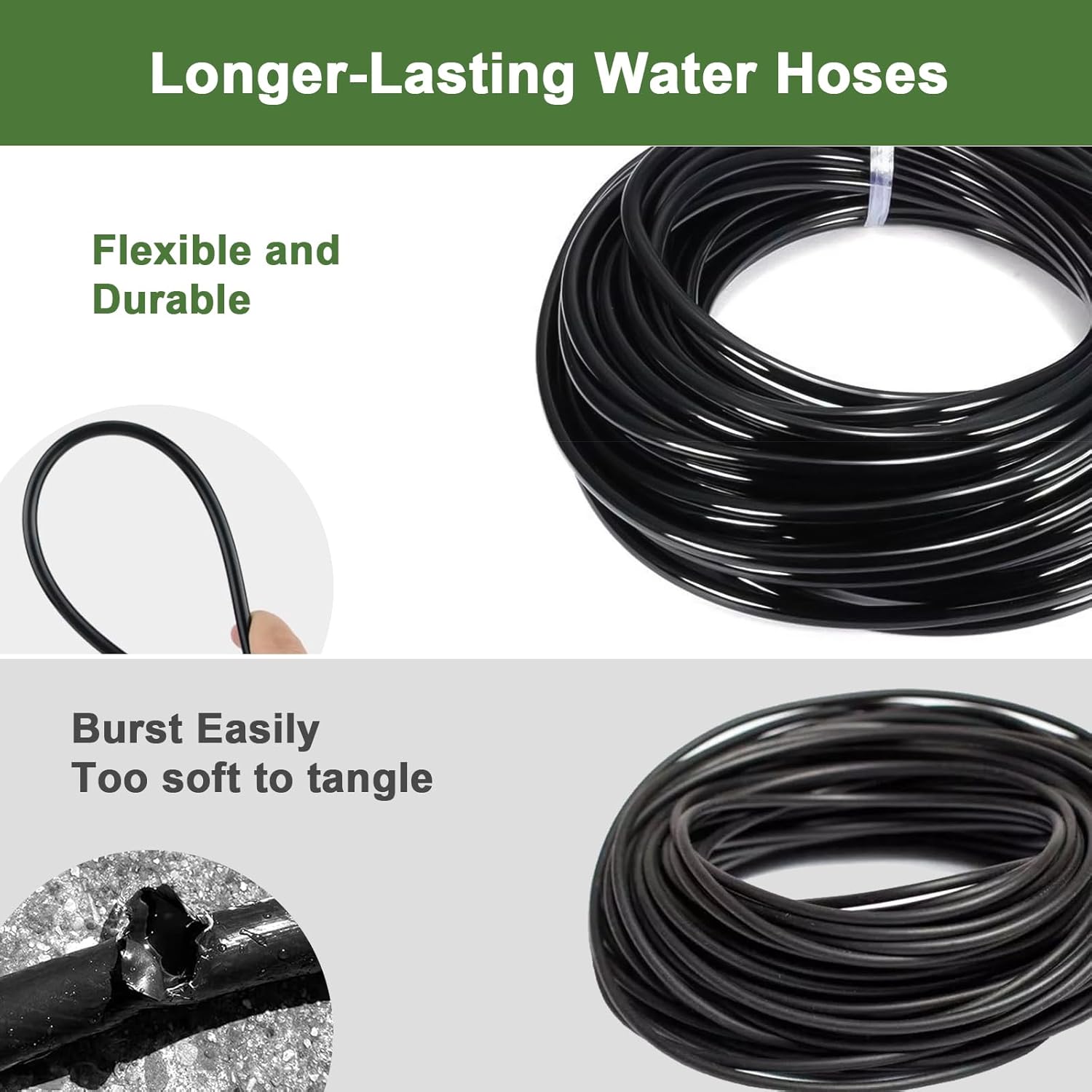 - 【More 1/2" Tubing and Couplers = Enhanced Water Pressure No More Dry Spots】Our watering system is equipped with 1/2" to 1/4" barbed tees and a 33 FT 1/2" hose that maintains stable water pressure throughout the entire system, ensuring each sprinkler head receives the optimal amount of water.