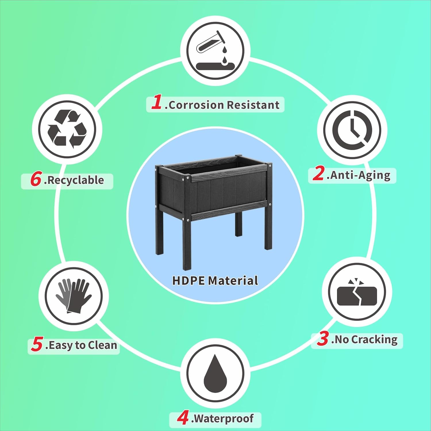 - ๐๐๐๐ ๐๐ช๐๐ก๐๐ฉ๐ฎ ๐๐ฟ๐๐ ๐๐๐ฉ๐๐ง๐๐๐ก๏ผRaised planting beds made of HDPE material have 7 advantages over wooden ones: no cracking; no rusting; high temperature resistant; anti aging; not easy to fade; easy to clean; can be disassembled
