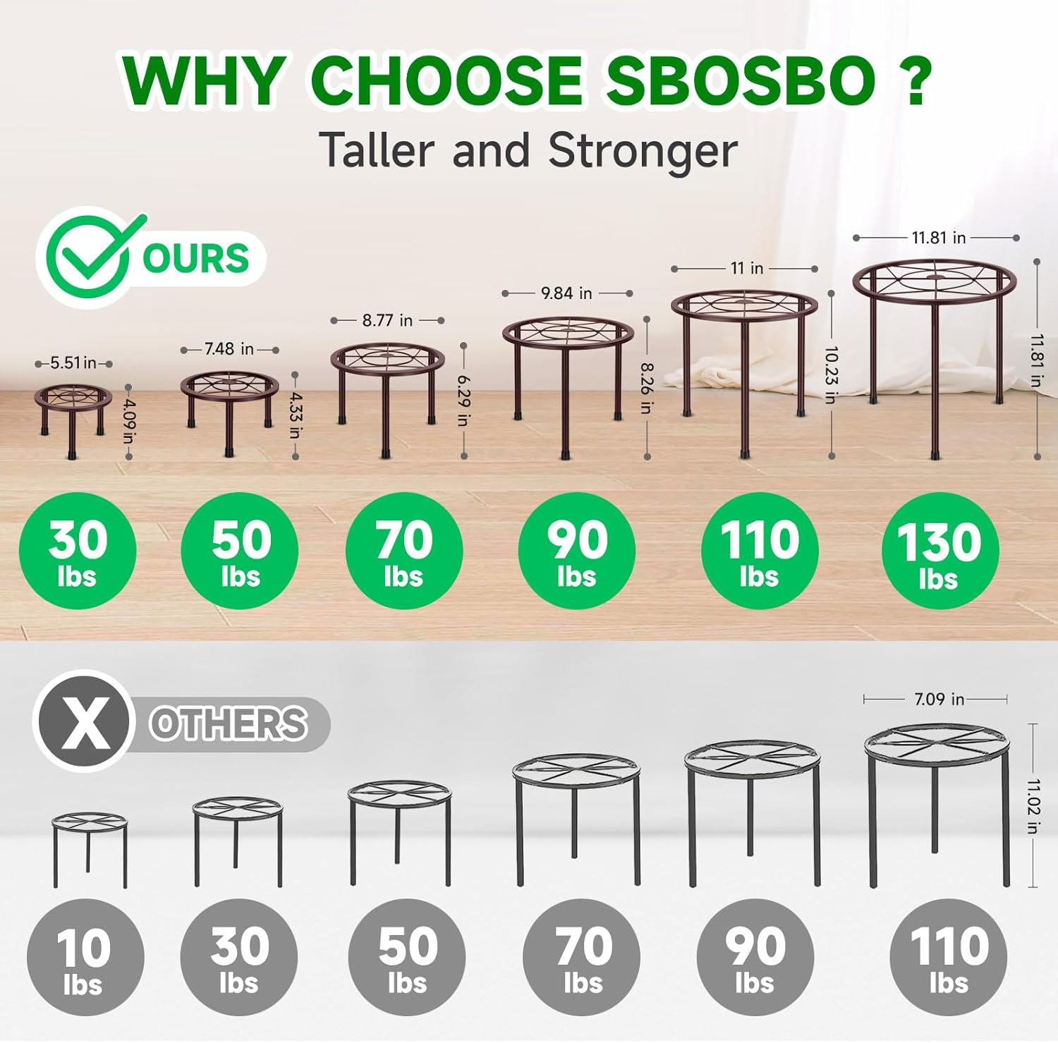 - Sturdy and Stable Structure: The anti-rust iron flower pot stands are made of high-strength metal, which are very sturdy and not easy to deform. Through precision forging and welding processes, the entire plant stand indoor achieves a stable structure and strong bearing capacity, capable of supporting heavy plants pots or extra large pots. The bottom of the plant stands can remain stable even under the weight of large and heavy flowerpots for a long time, resistant to deformation or damage
