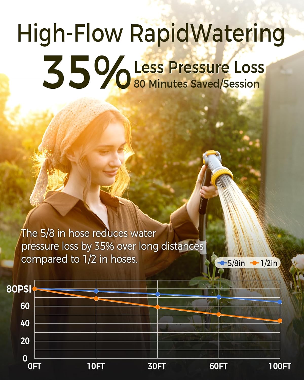 - High-Flow Rapid Watering: The 5/8 in x 90 ft hose on this retractable hose reel reduces water pressure loss by 35% over long distances compared to 1/2 in hoses, saving 80 minutes per session for irrigating basketball court-sized gardens. Ideal for large-scale, high-efficiency tasks