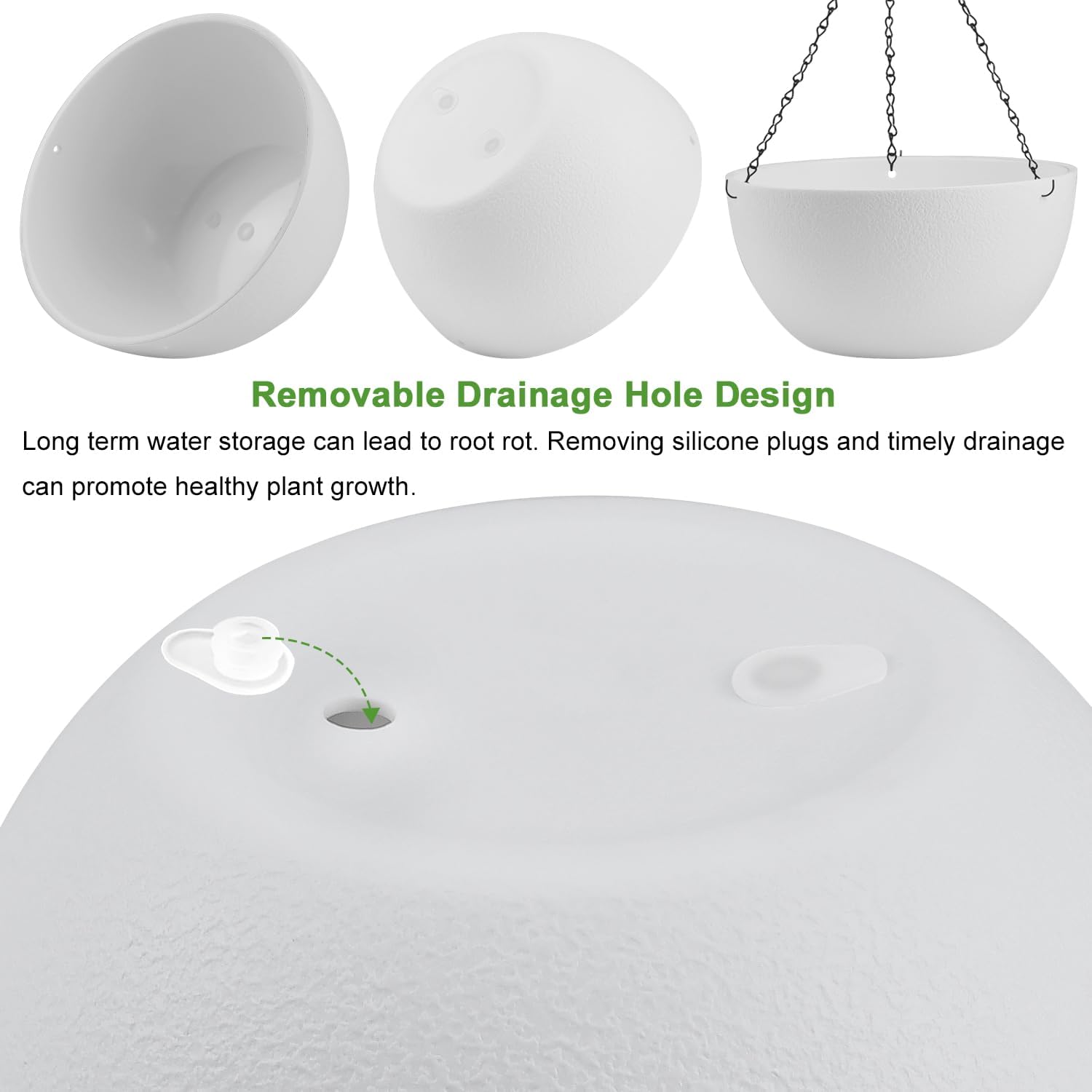 - 【Indoor/Outdoor Use】 Designed with your gardening needs in mind, these hanging planters come with 2 drainage holes and 2 plugs to ease the concern of overwatering for your indoor and outdoor plants.