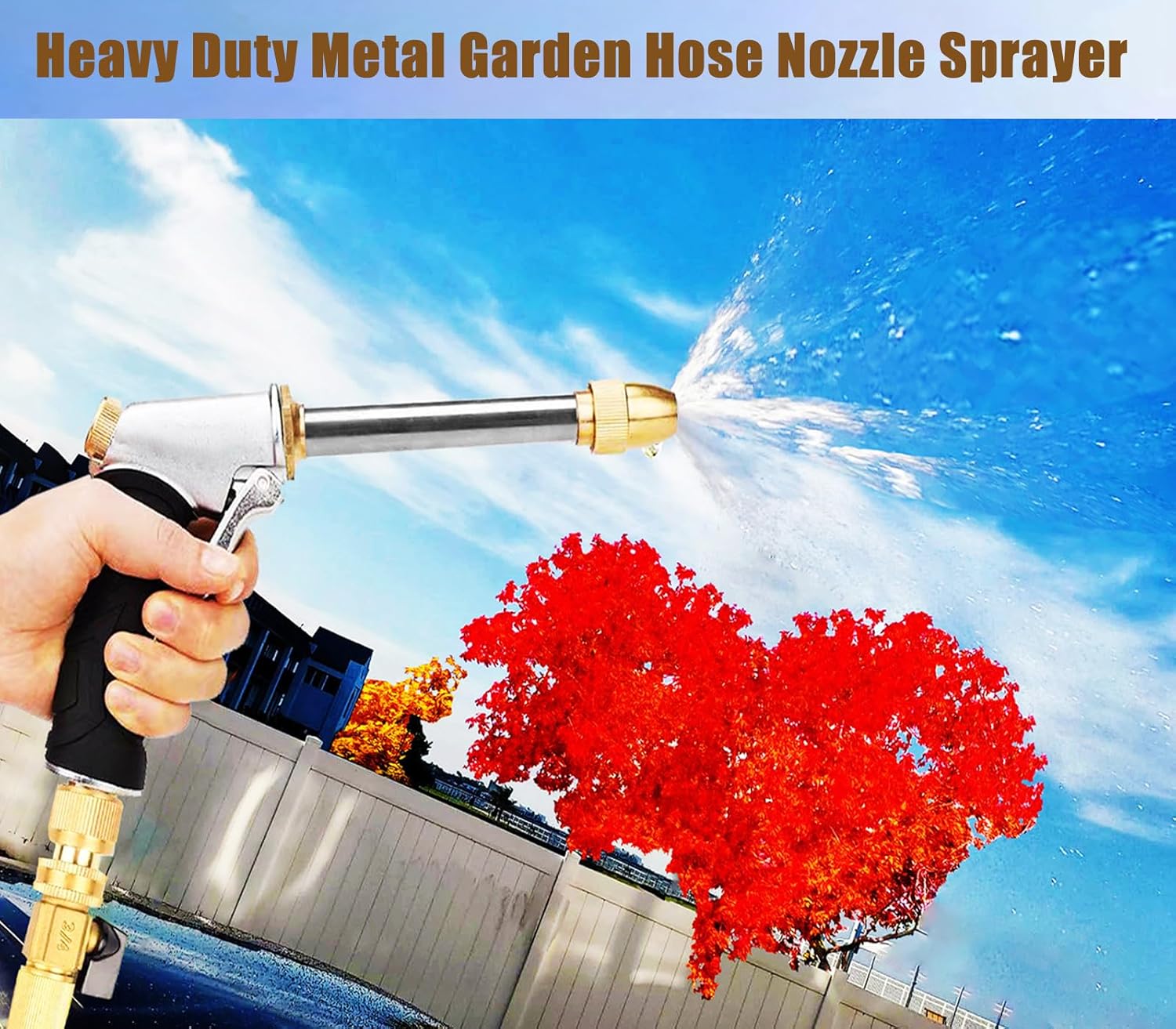Upgrade Garden Hose Nozzle,100% Heavy Duty Metal Spray Gun With Full Brass Nozzle,High Pressure Water Hose Nozzle Sprayer Head,3/4" Quick Connectors,for Lawn & Garden,Washing Cars,Showering Dogs&Pets