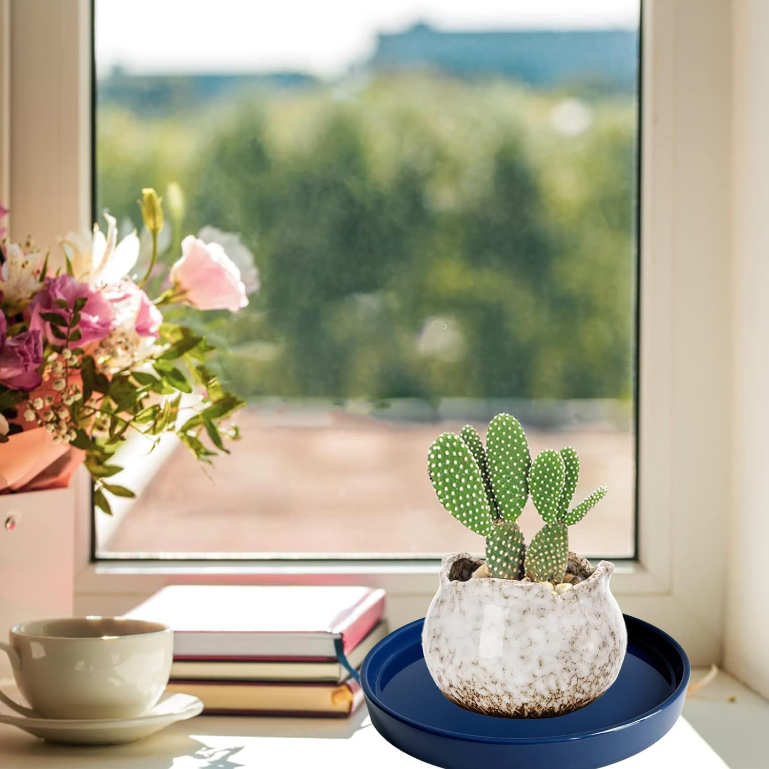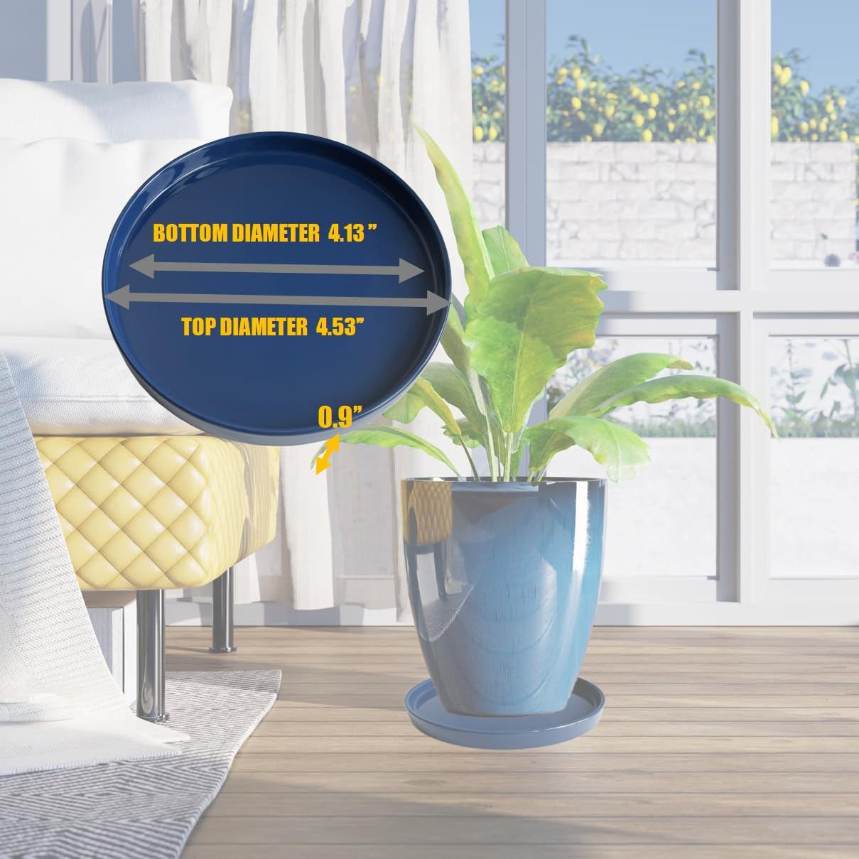 Plant Saucer Pot Tray Planter Saucers 4 Pack 4 inch, 5 6 7 8 9 10 11 12 13 15 Inch for Indoors Outdoor, Durable Sturdy Ceramic Flower Drainage drip Water Tray for Glazed Pots Base ((4.5"/4.1"-Blue)