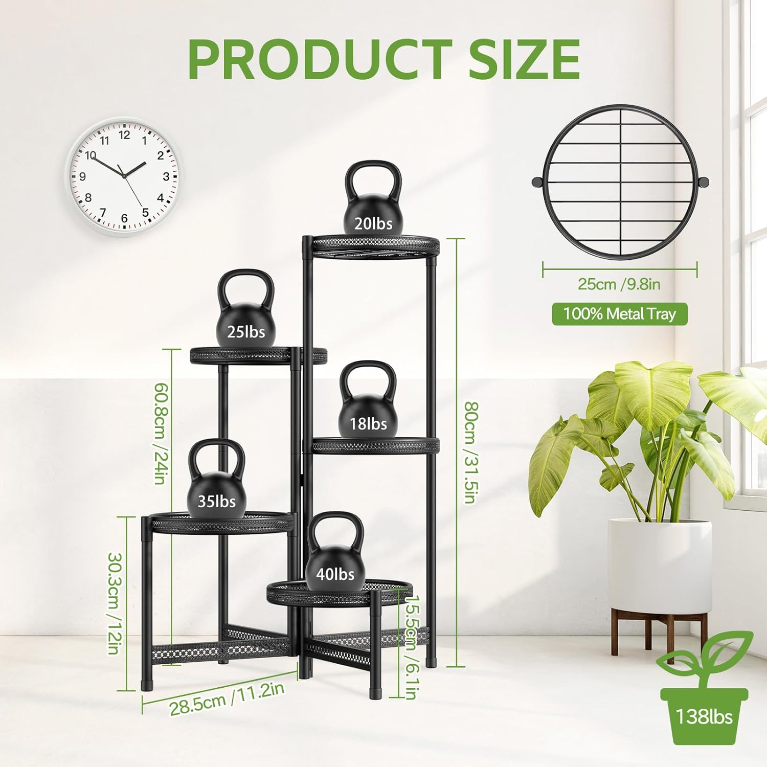 - Unique Modern Style Holder: The 5 tier plant stand is designed with a unique spiral tiered structure that can hold up to 5 pots without blocking each other, so that each of your plants can fully enjoy the sunlight. Modern and classic in style, this outdoor plant stand is perfect for decorating balcony, porch, garden, patio, window and office