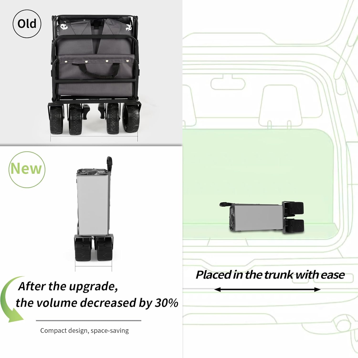 - 【Built-in Dual Bearings】The dual-bearing design provides maximum load capacity and safety, allowing for smooth rolling on muddy terrain, grassy areas, and beaches. Even when children are seated in the collapsible wagon, they won't feel the bumps. It is also convenient for transporting pets. Moreover, both the collapsible wagon and the foldable wagon have the added feature of being easily folded, making them convenient to carry and store.