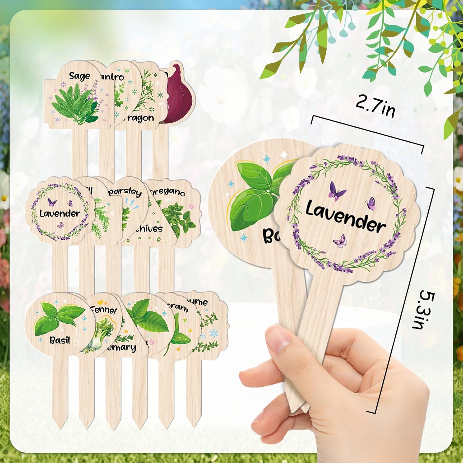 - ๐๐Funny Plant Labels - You will get 15* Herb garden markers with 15 different herbs, Plant tags have beautiful wood grain vegetable labels are enough for your daily use and replacement needs, making your garden look more attractive and interesting.