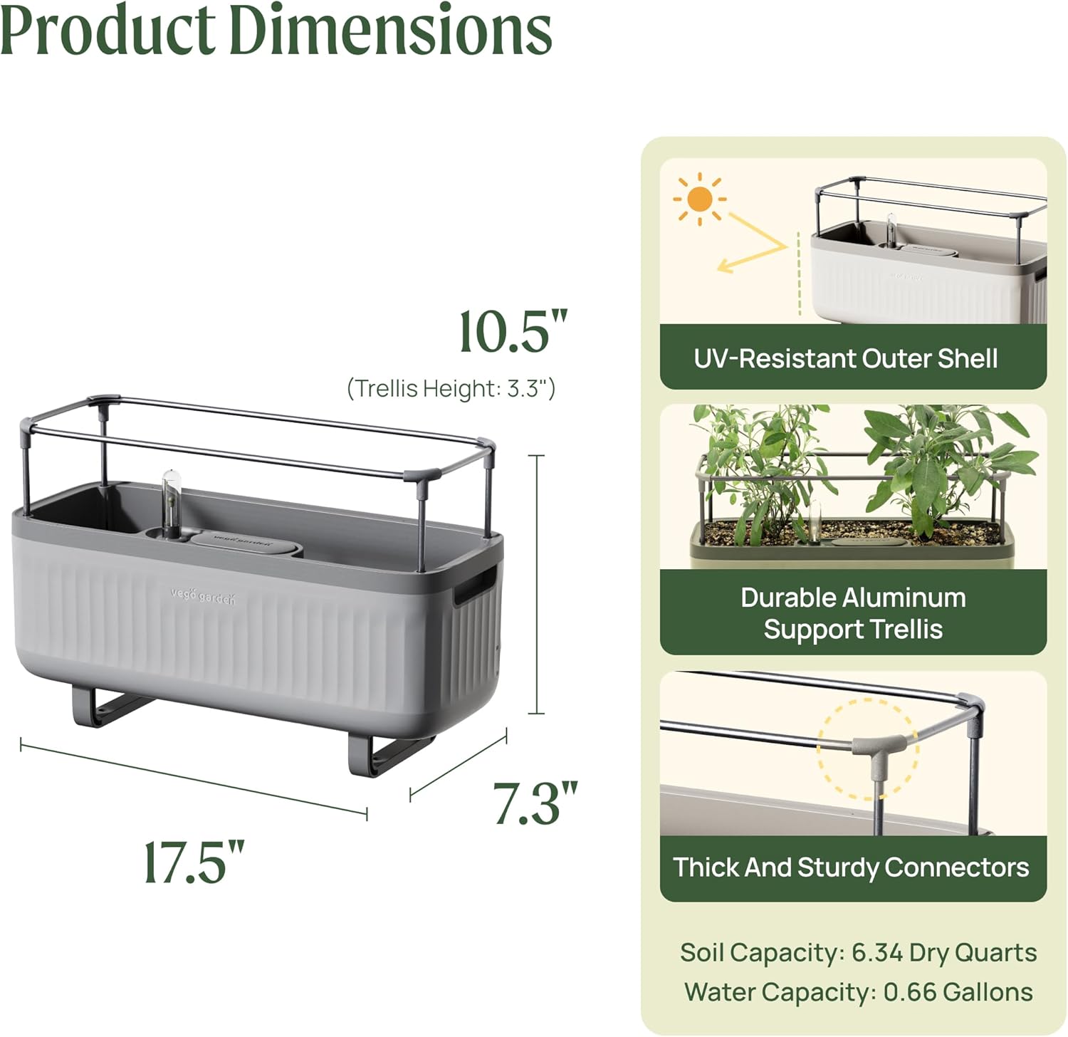 Vego garden 2 Pack Herb Indoor Plant Box, Self Watering Planters Pots for Indoor Plants with Trellis for Kitchen Window Sill or Countertop Plants Cage - Fog Gray