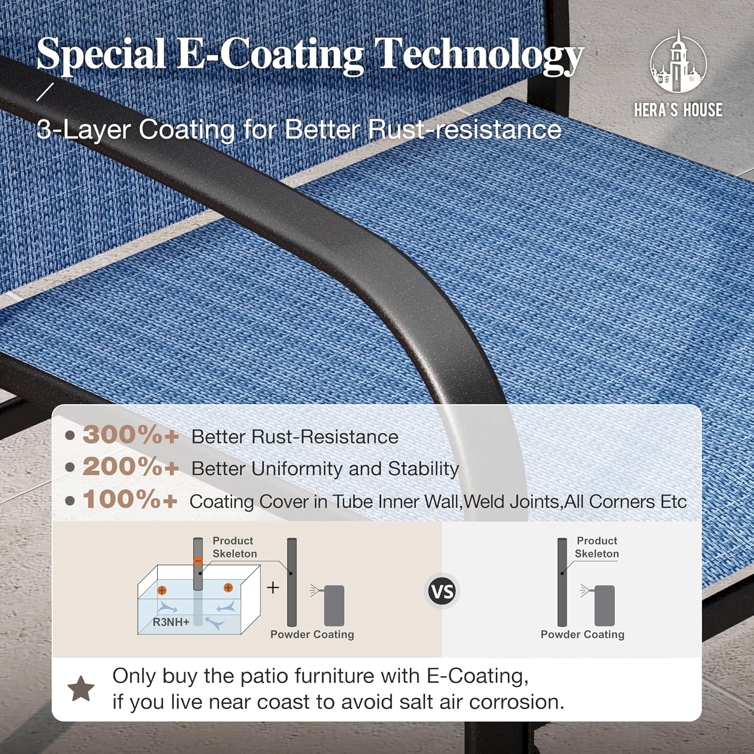 HERA'S HOUSE Outdoor Dining Set 5 Piece Patio Table and Chairs Set, 4 x Textilene Dining Chair, 37" Square Wood Look Dining Table, for Lawn Garden Backyard Deck (Blue)
