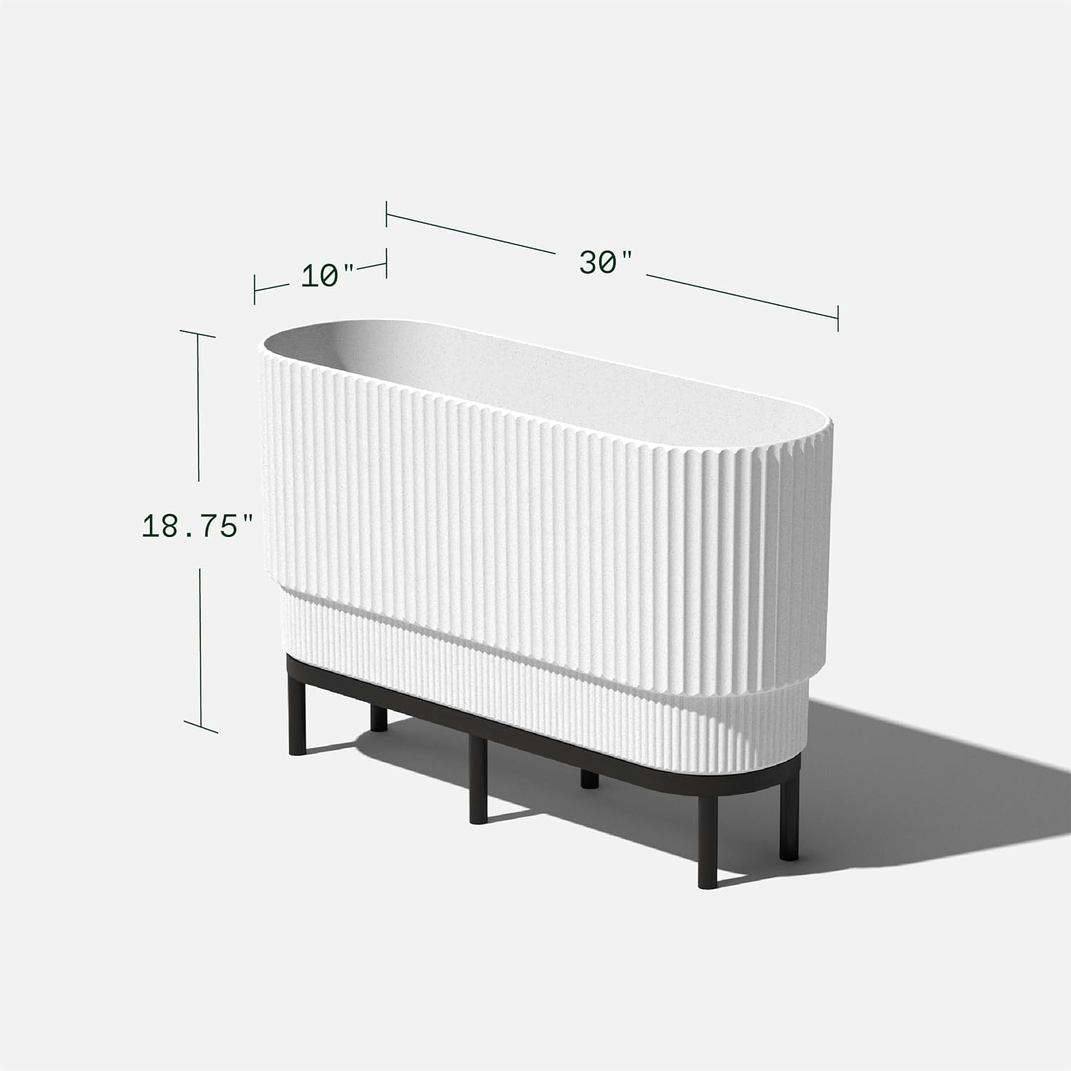 - DIMENSIONS & DETAILS: The Raised Demi Long planter measures 30 Inches in length, 10 inches in width and 14.25 Inches in height. On the stand, the planter measures 19 Inches in height